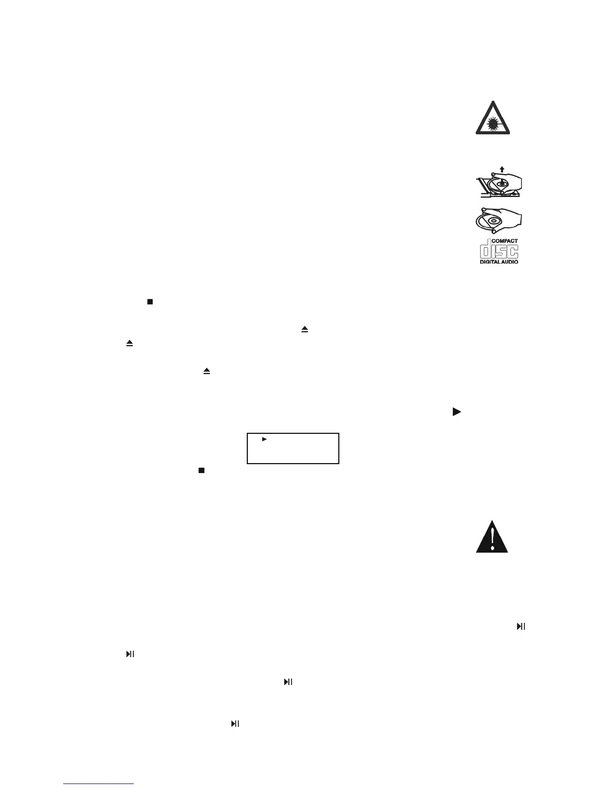 1. Press the button, the CD will stop playing. The LCD will display Stop and the number of