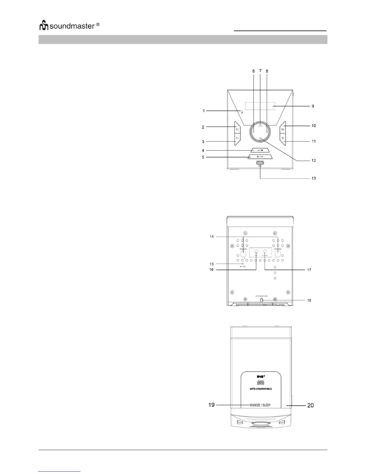 SOUNDMASTER MCD400 - Location of Controls