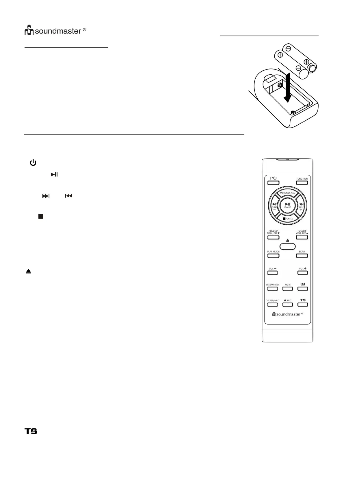 Volume -/+ Press to adjust volume level up/ down