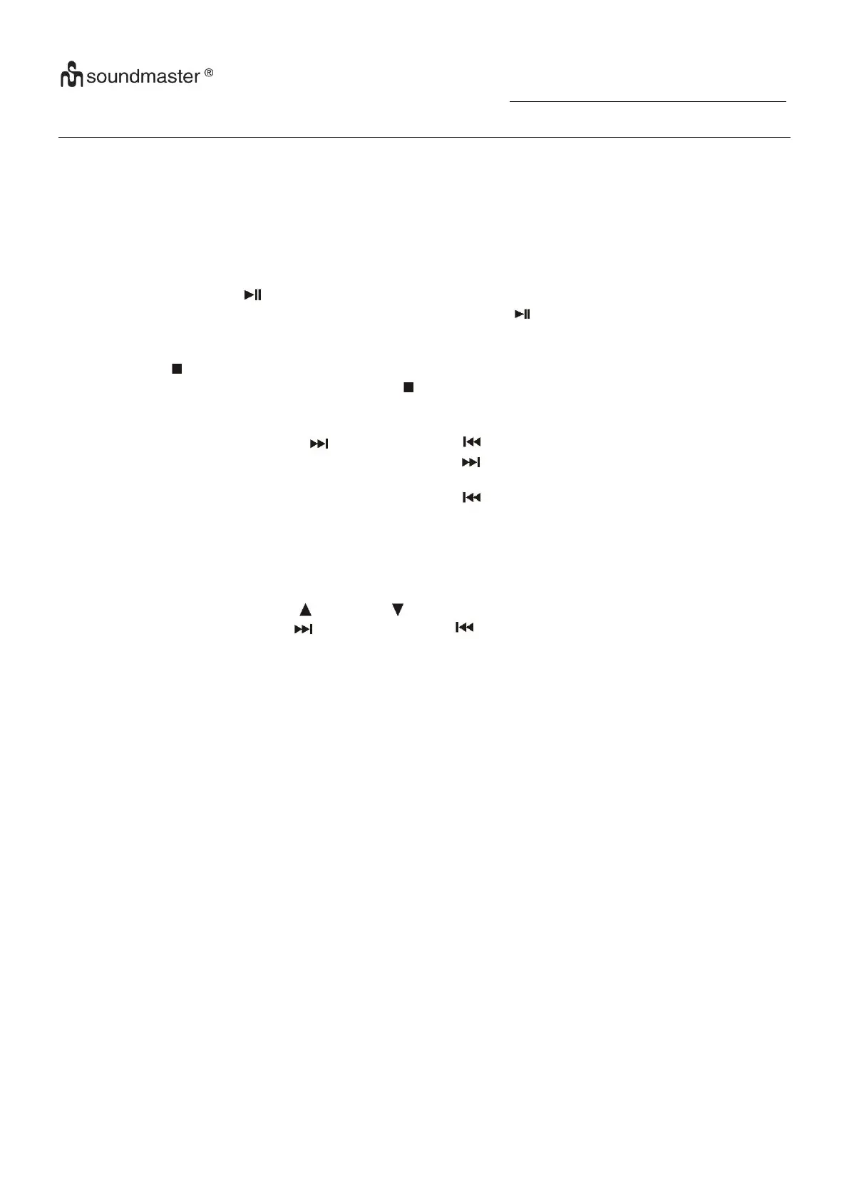 2. Als tijdens de afspeel- of pauzemodus op de “Overslaan omlaag ”-toets (13) wordt gedrukt. De vorige track zal worden