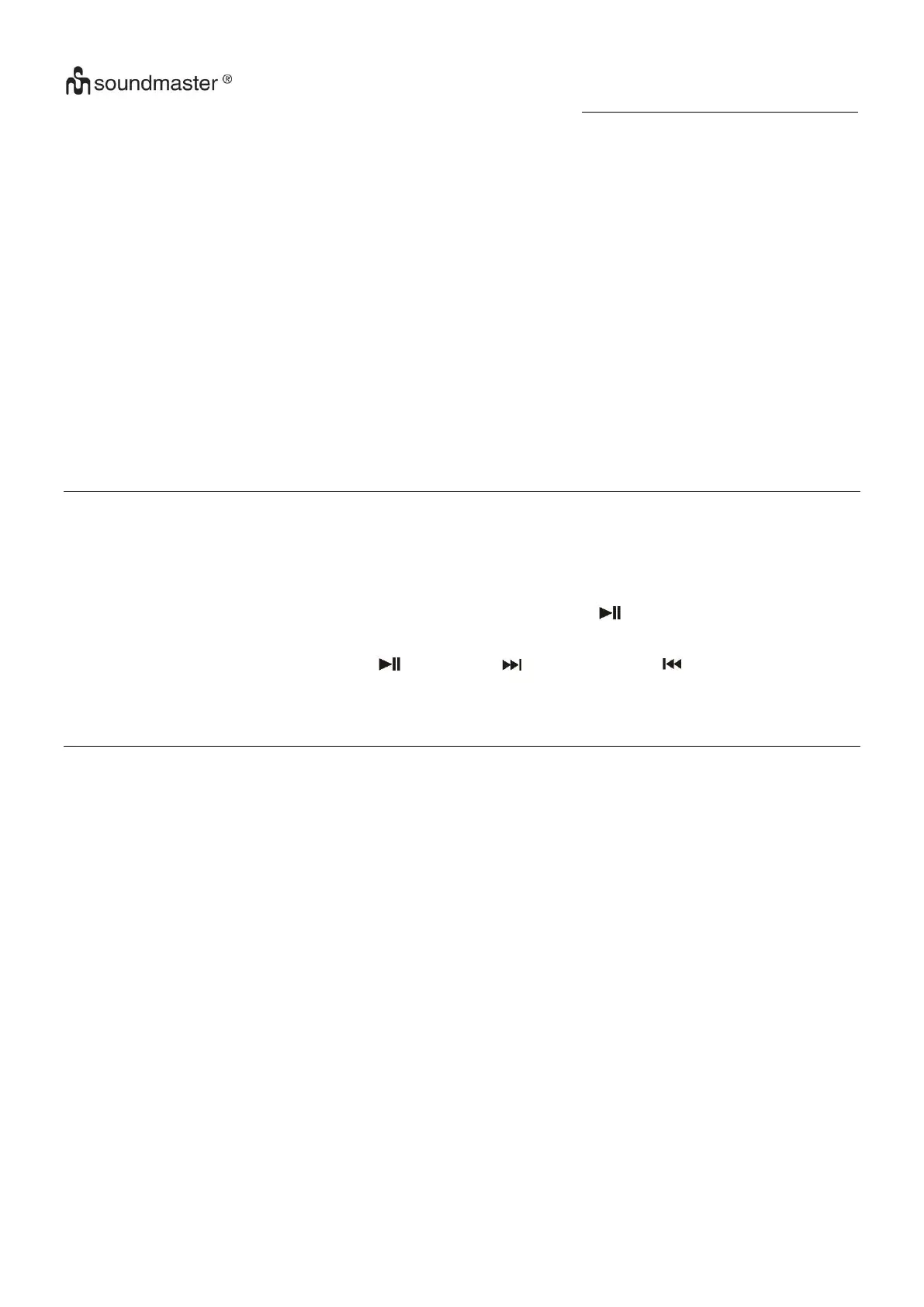 - Du kan trycka på knapparna ”Play/Pause ” (16), ”Nästa ” eller ”Föregående ” (23/13) på enheten eller