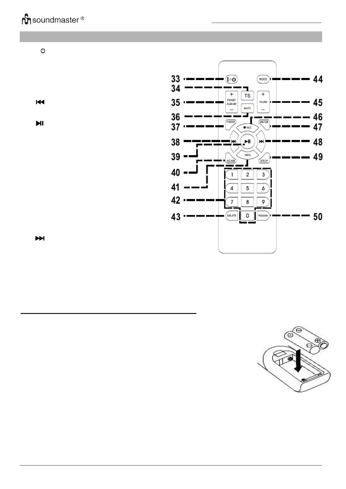 49. STOP Arrêt de la lecture CD/USB