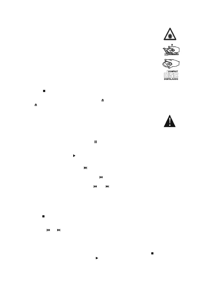 1. Press the button, the CD will stop playing. The LCD will display Stop and the number of