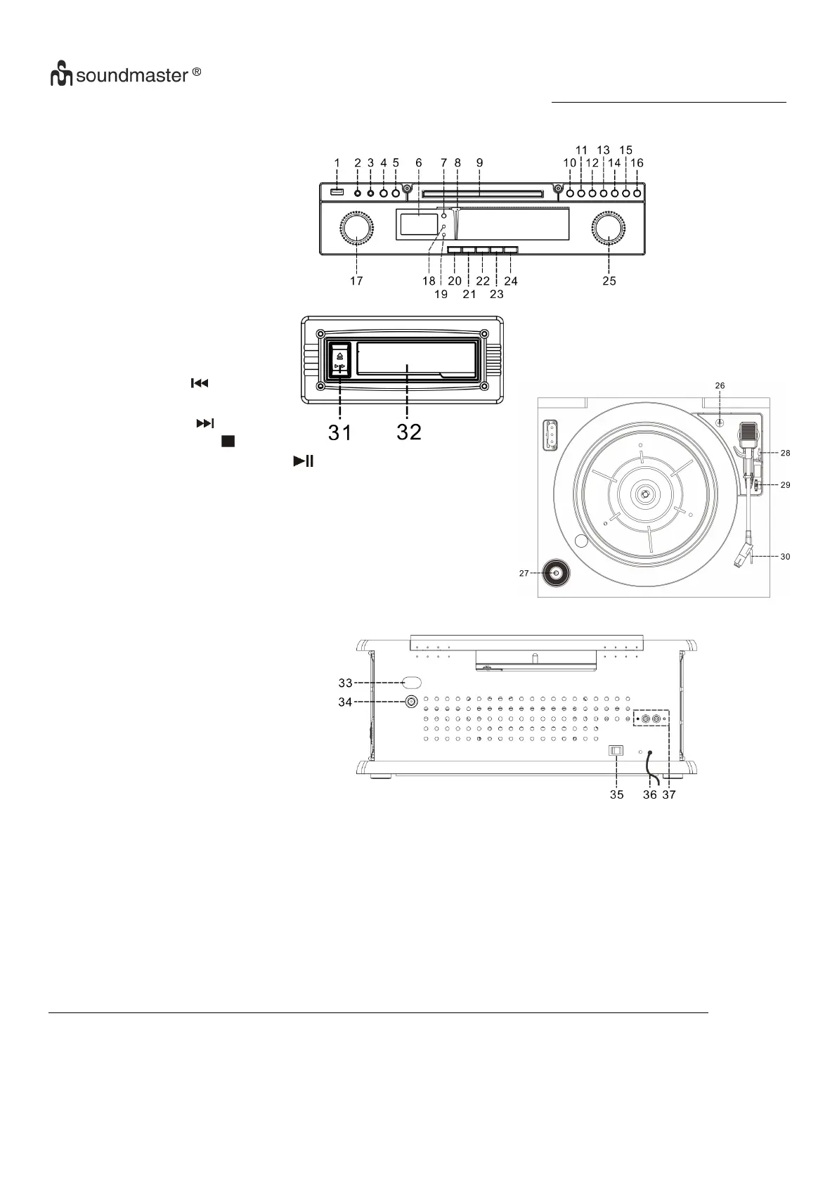 24) Tlačítko gramofonu/AUX