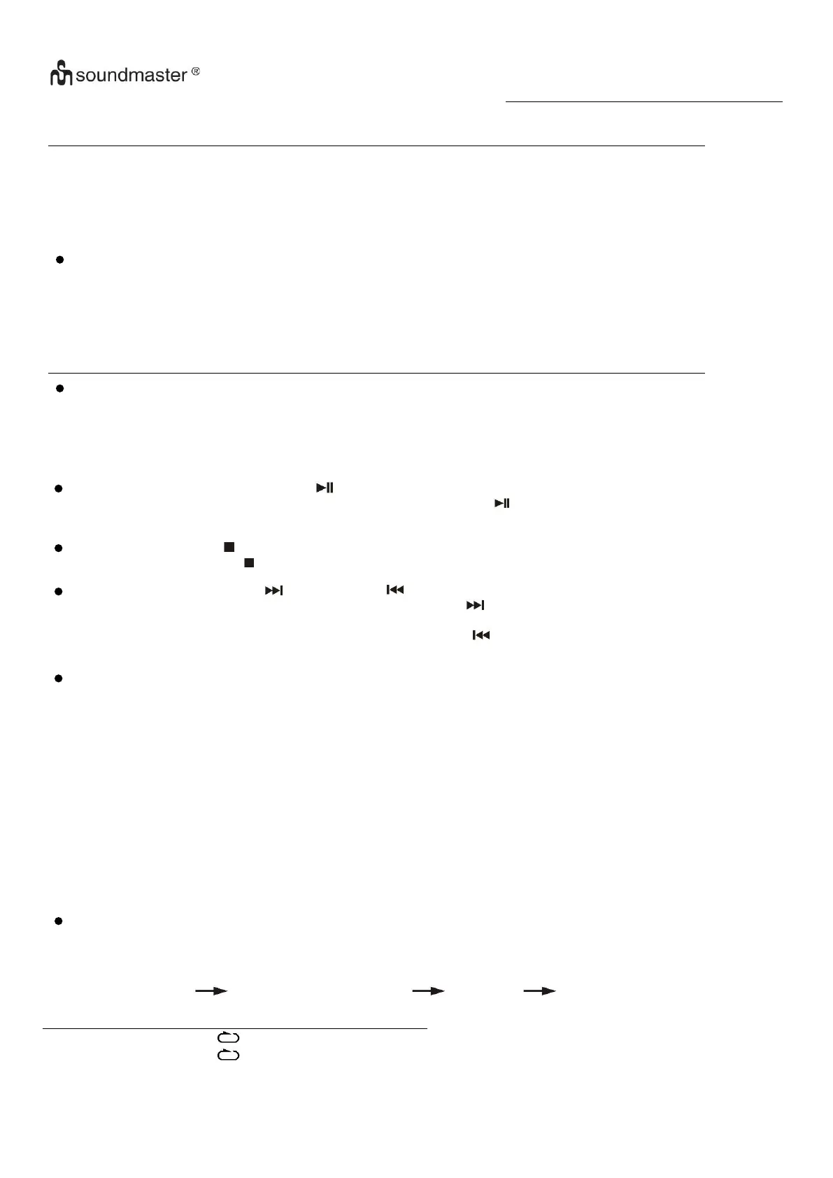 2. In modalità riproduzione/interruzione, premere il tasto “Salta indietro ” (12). In questo modo, l'unità si sposterà al brano