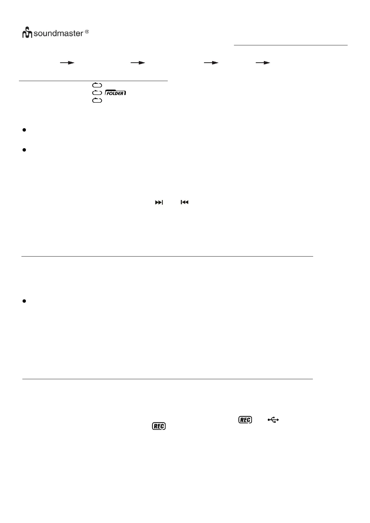 musikmappnamn – “RIP” för CD-DA-kodning, “REC” för Tuner-, Aux-, Kassettkodning och “FROMCD” för skivkopiering CD-MP3