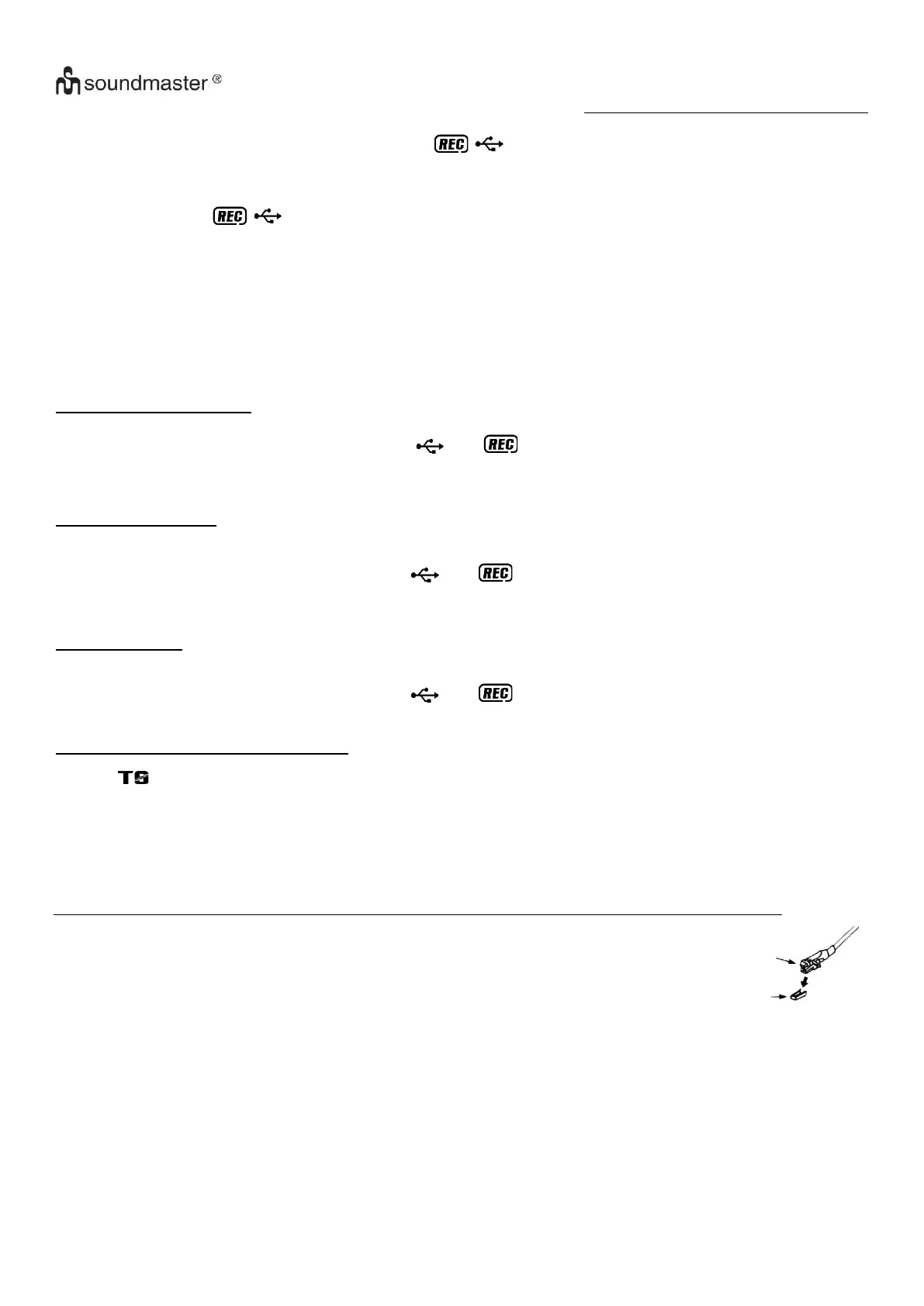 knappen ” ” (spårseparation) på fjärrkontrollen under kodning från phono/kassett/radio till USB, skapar systemet ett nytt spår