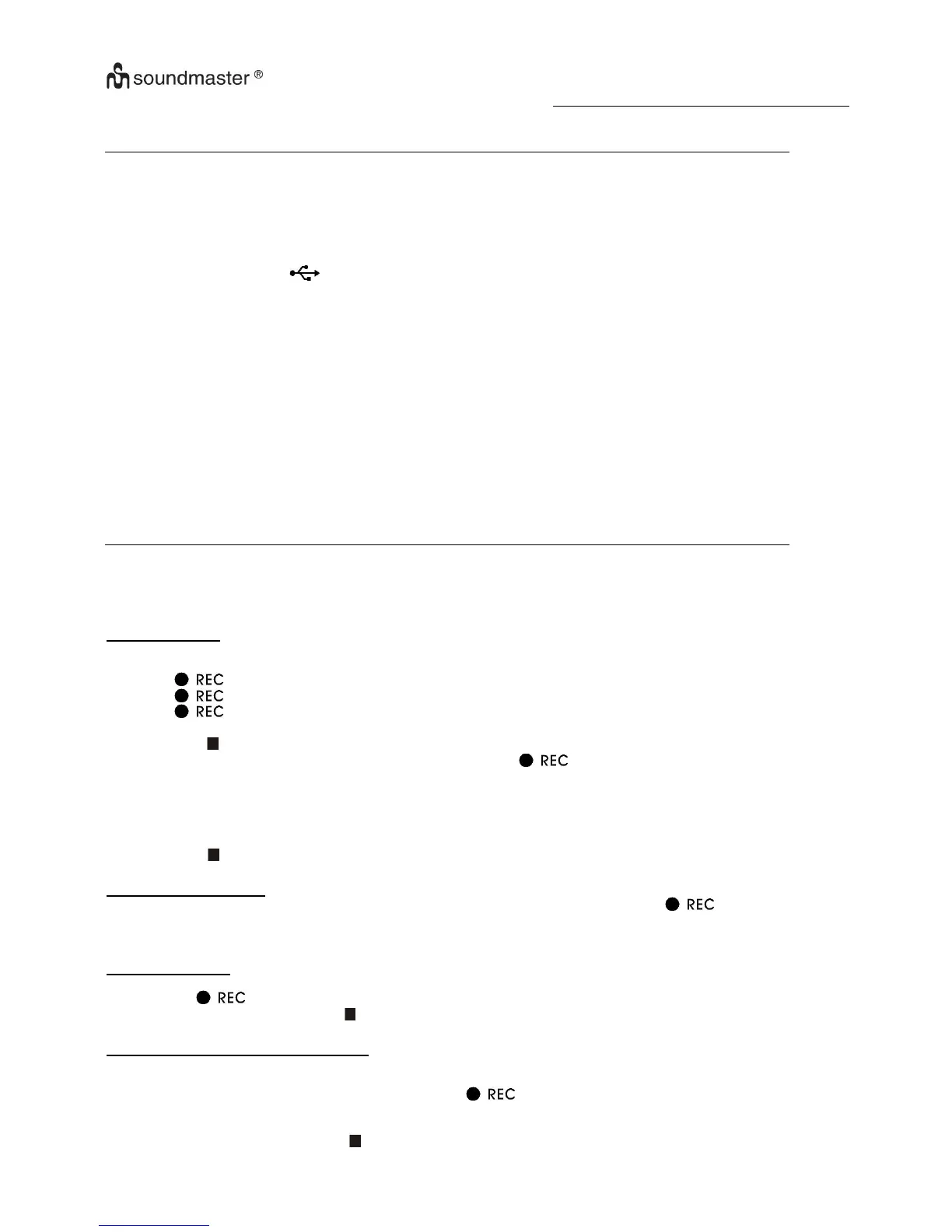2. Press “ ” button (10) during the playback of the desire track and the display will show “REC” and “USB” flashing.