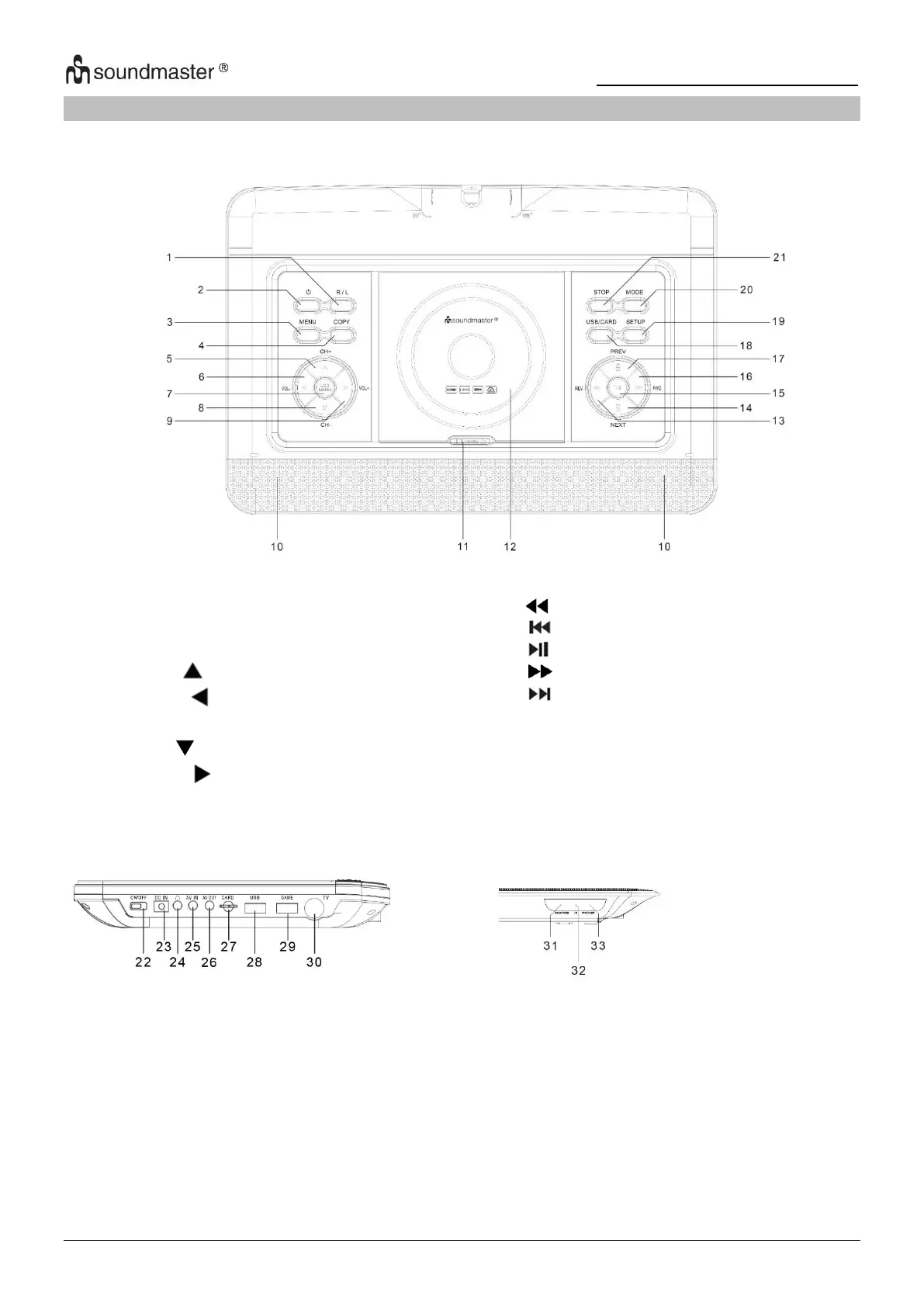 SOUNDMASTER PDB1600 - Location of Controls
