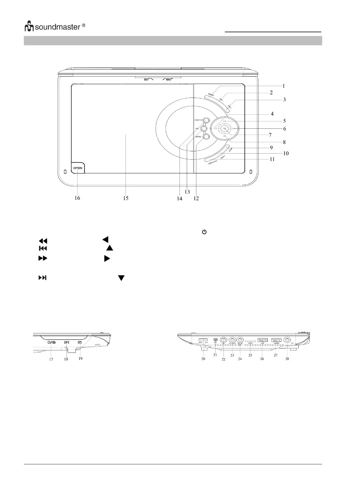 SOUNDMASTER PDB1910 - Umístění Ovládacích Prvků; Pohled Zepředu