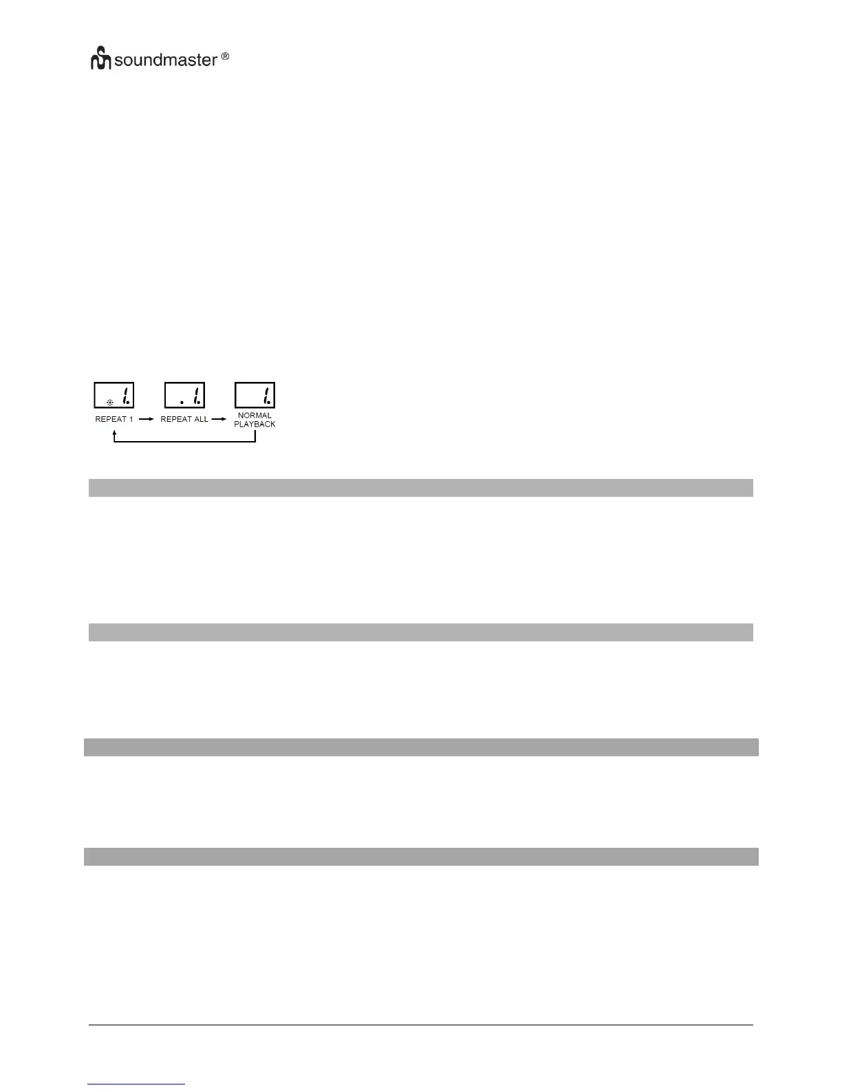 Press the “REPEAT” button before or during playing CD disc, each press switches the mode function as follows: