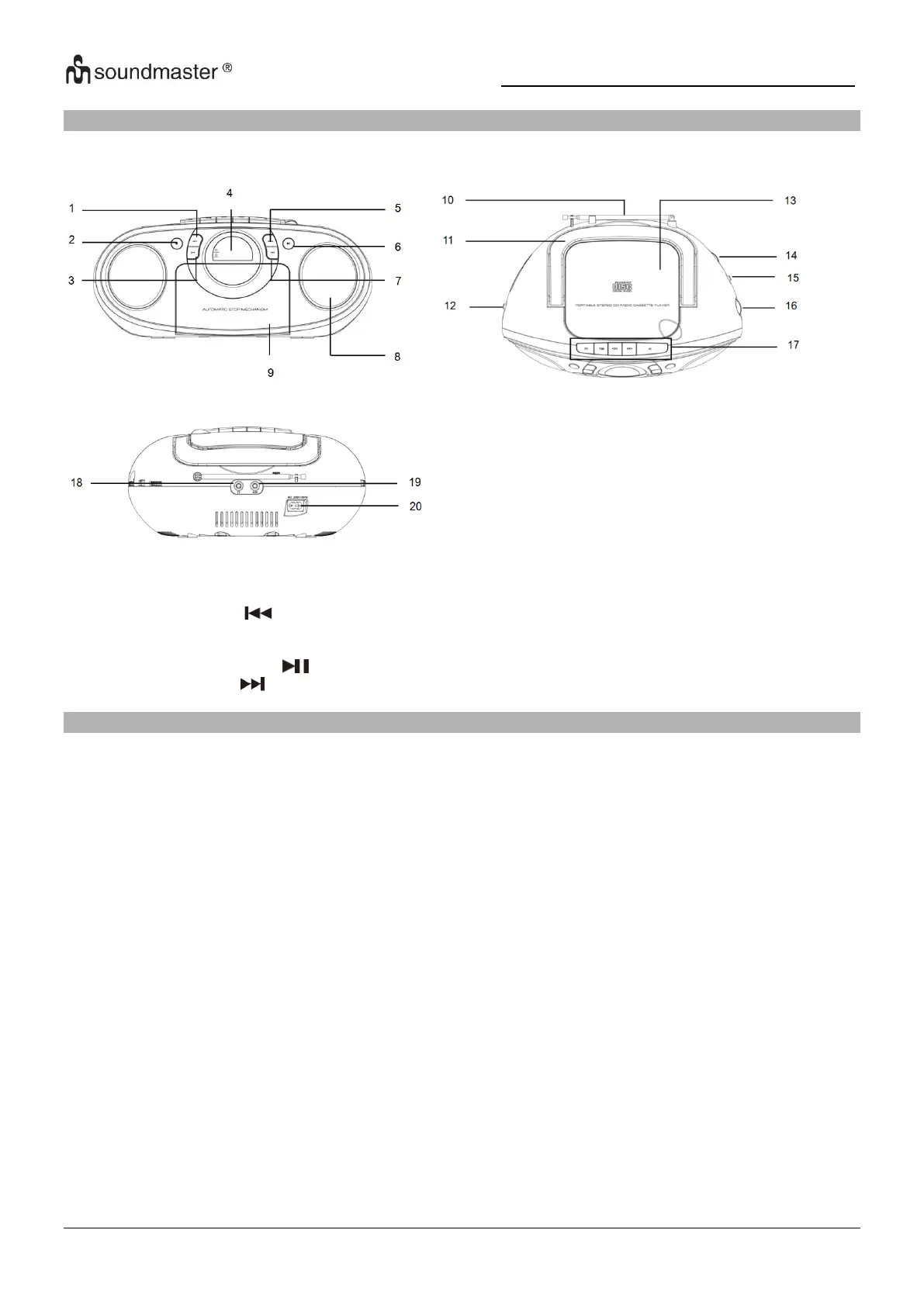 6. TASTE CD PLAY/ PAUSE 13. CD FACH 20. NETZANSCHLUSS
