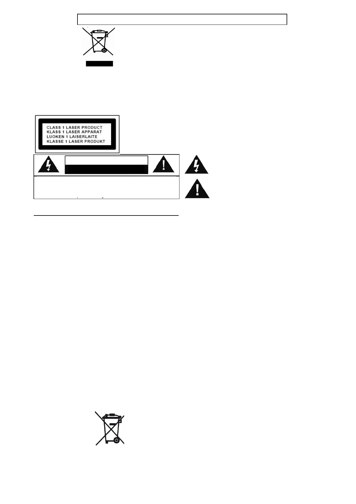 • O aparelho está equipado com um “Laser Classe 1”. Evite exposição ao feixe laser, dado que este poderá provocar