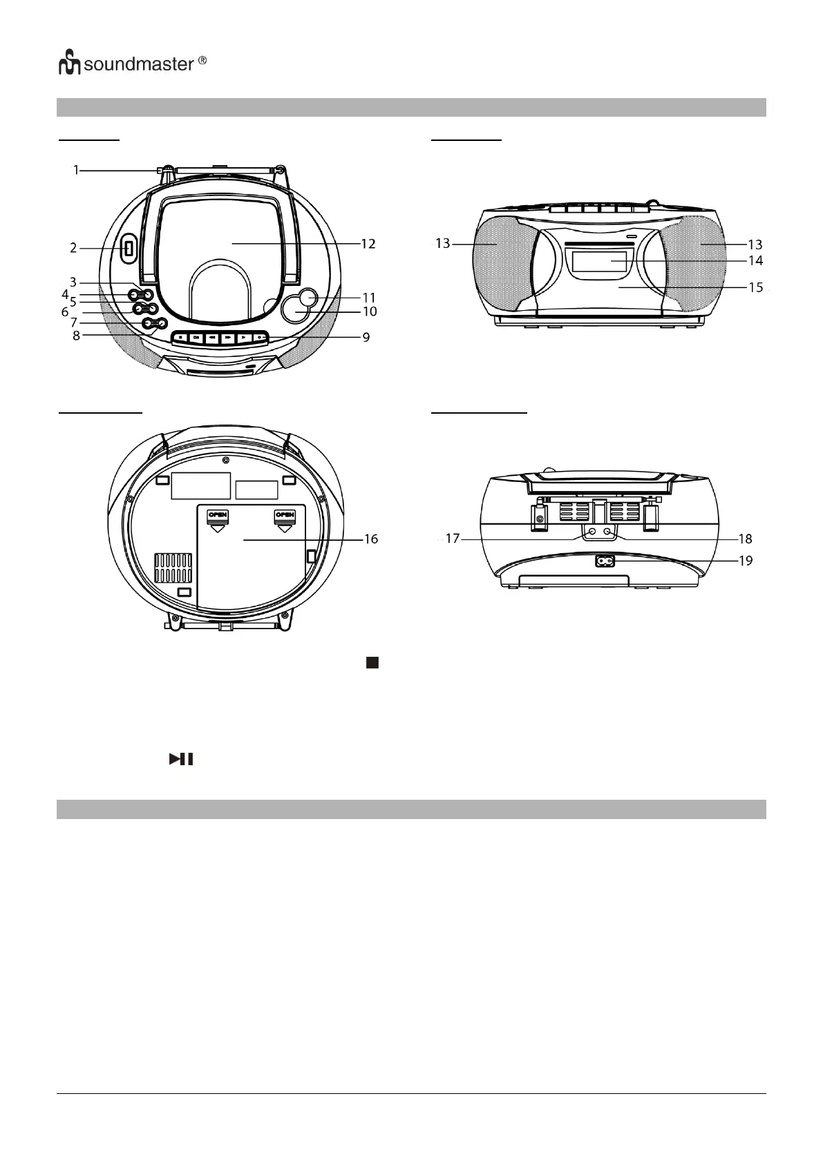 4. SKIP- ▌◄◄ 11. STANDBY / FUNCTION 18. HEADPHONE JACK