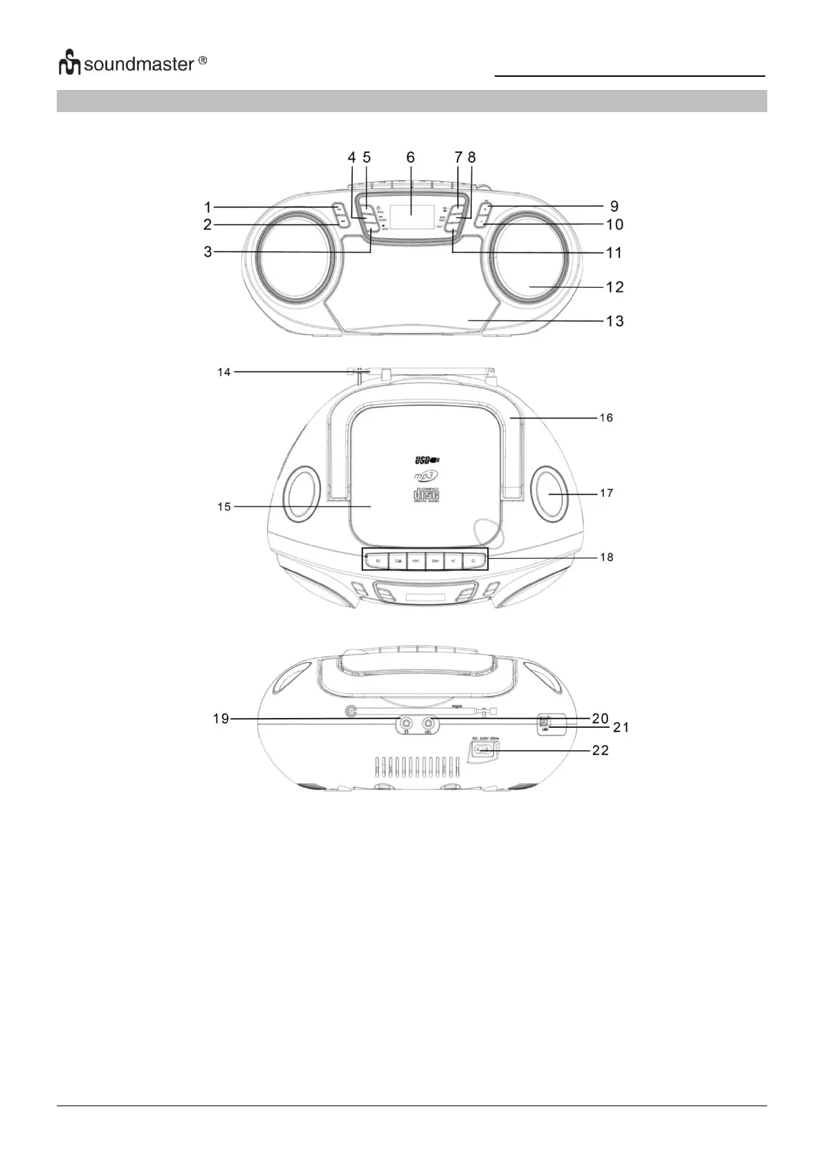 SOUNDMASTER SCD5800 - Vista Dianteira; Localização Dos Controlos; Vista Posterior