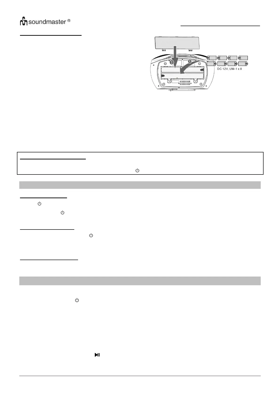 2. Insert 8 batteries of type LR20 (“D” size/UM-1)