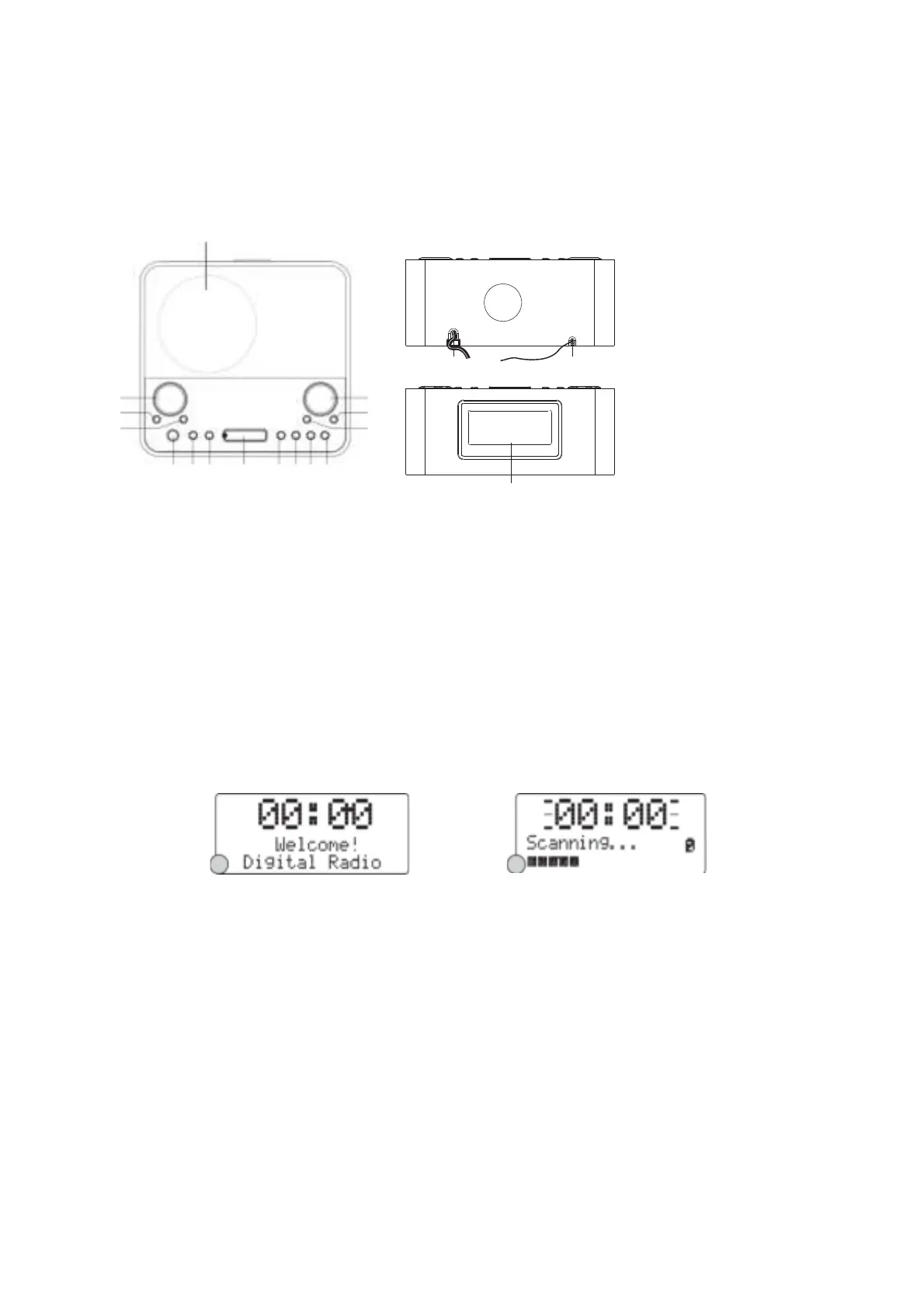 button once to turn the radio on, it will then automatically enter into the DAB mode and perform auto scan