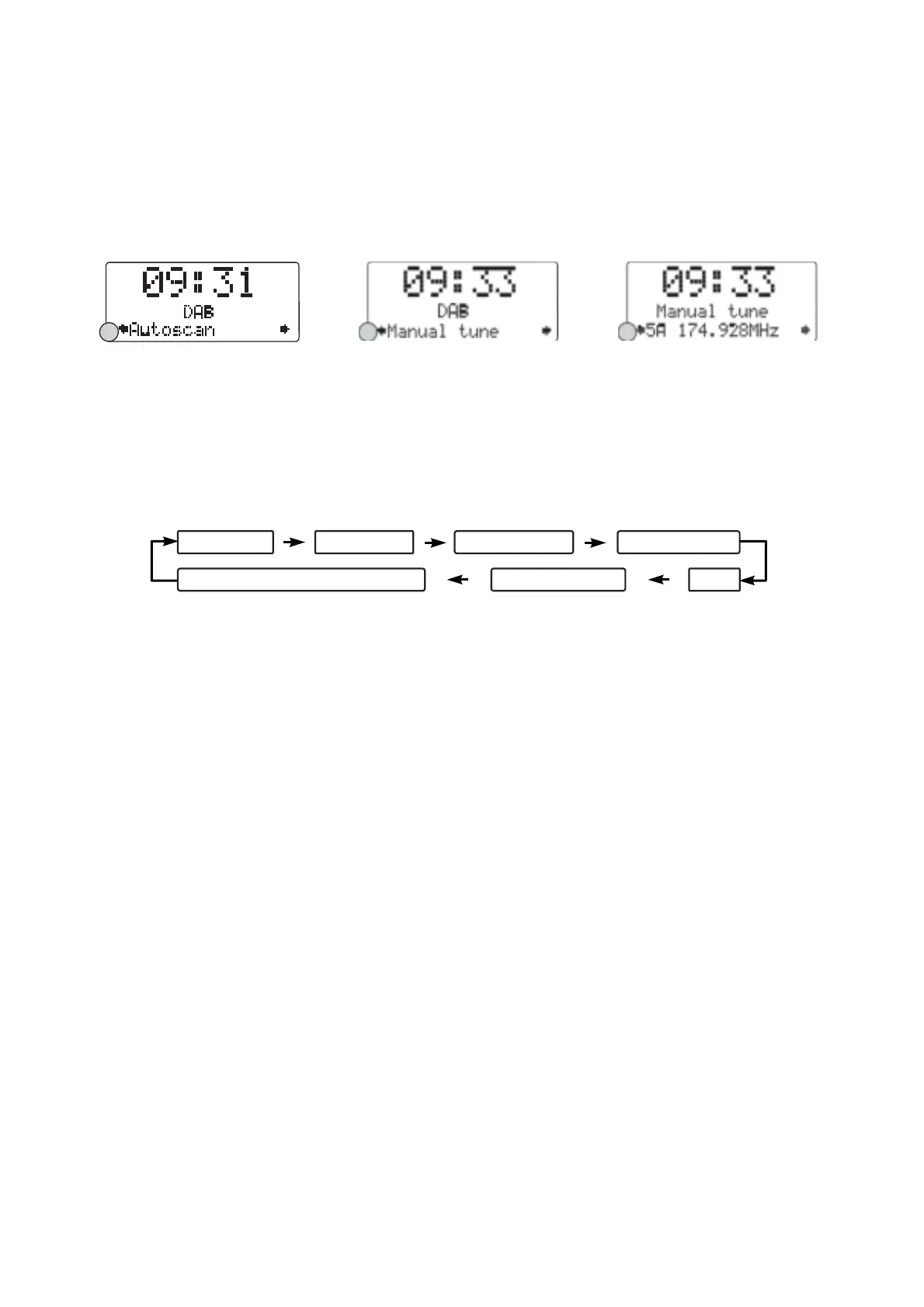 1. To select manual tune, first press the MENU button to enter into the Tune Select Menu, then press