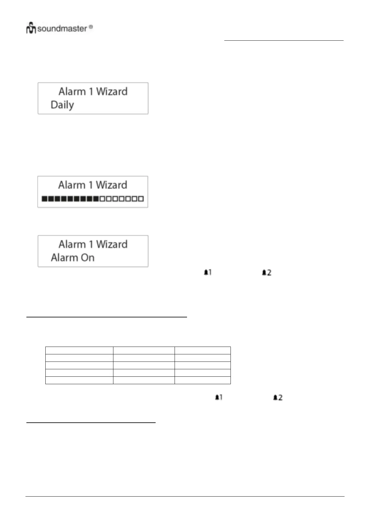 1. Drücken Sie im Standby-Modus „ALARM” (4), um sich durch die Optionen der Weckereinstellung zu