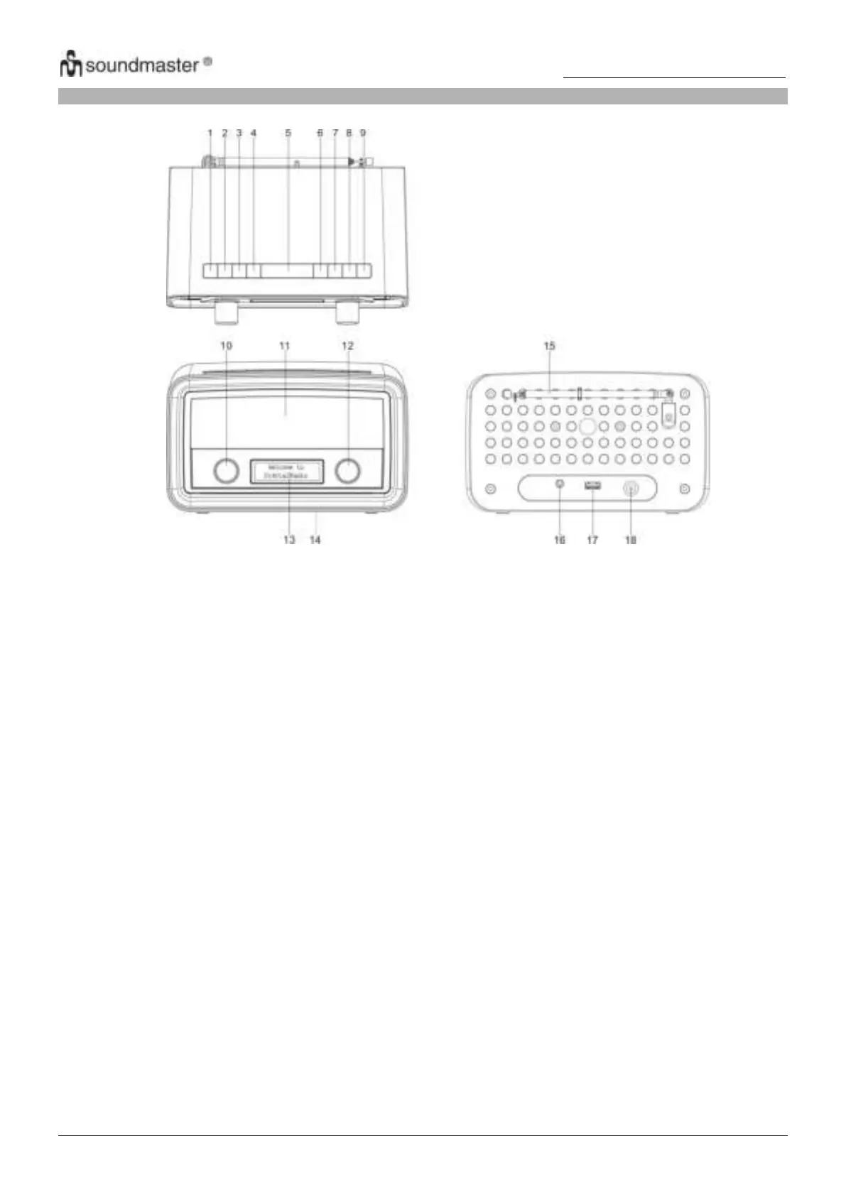 12. SELECT: In DAB mode, rotate to select a DAB station. In FM mode, rotate to tune FM