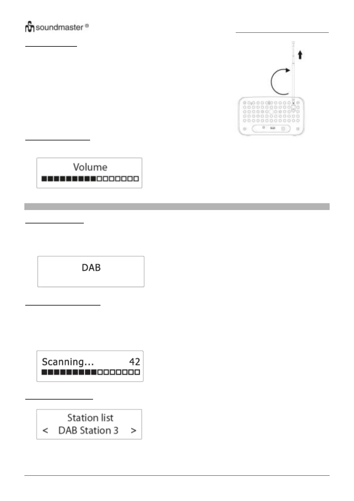In DAB mode, press “SCAN” (9) to activate the automatic station search.