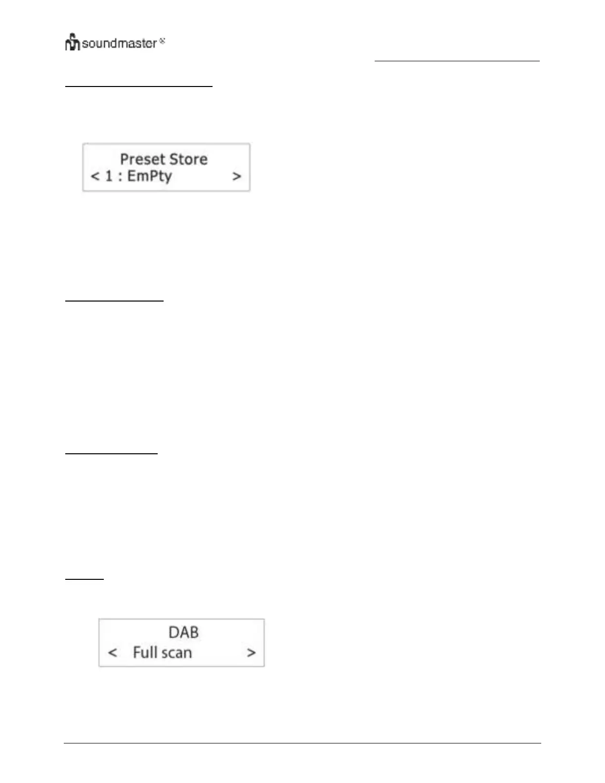 2. Trykk på og hold inne «PRESET» (8) til «Preset Store» vises på skjermen.