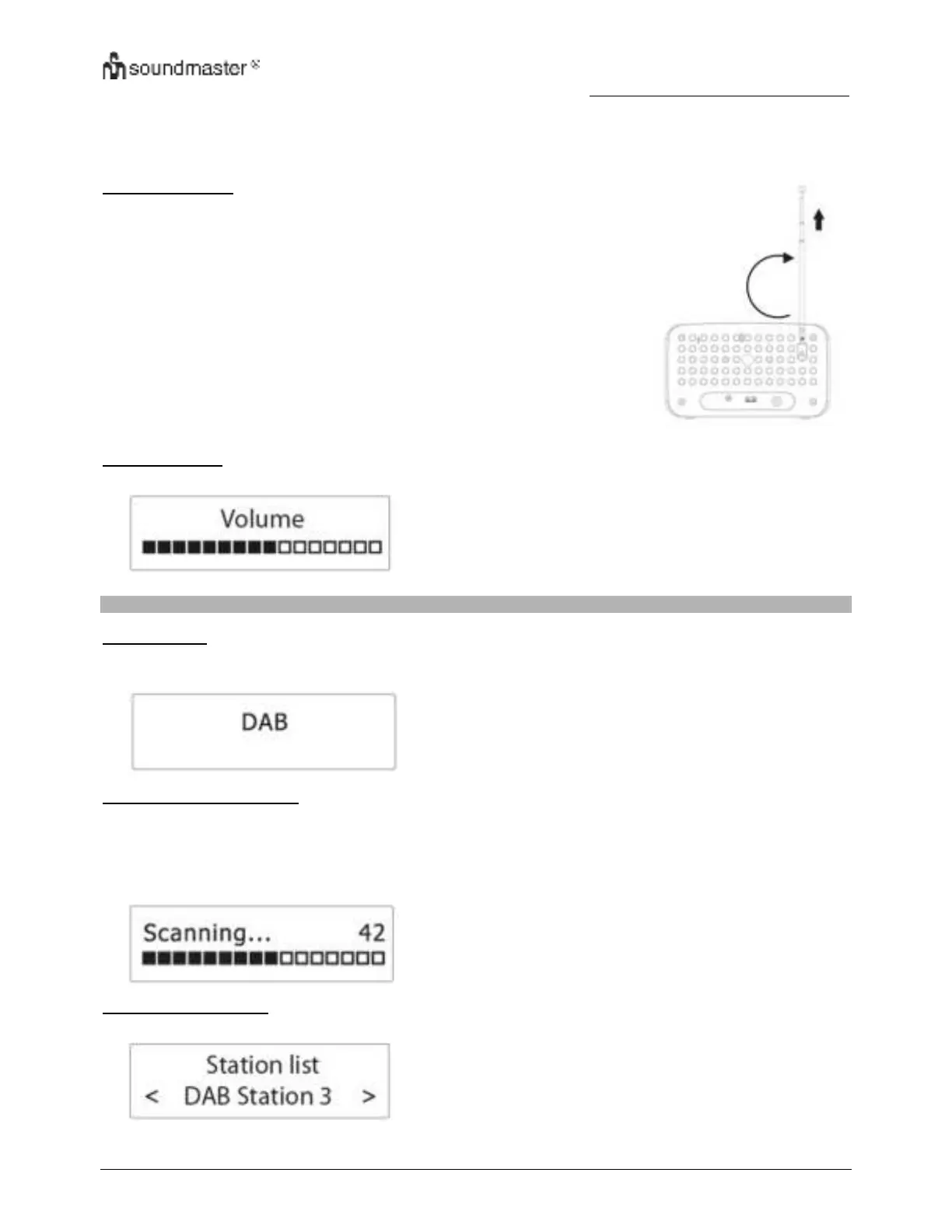 I DAB-läge, tryck på ”SCAN” (9) för att aktivera automatisk stationssökning.