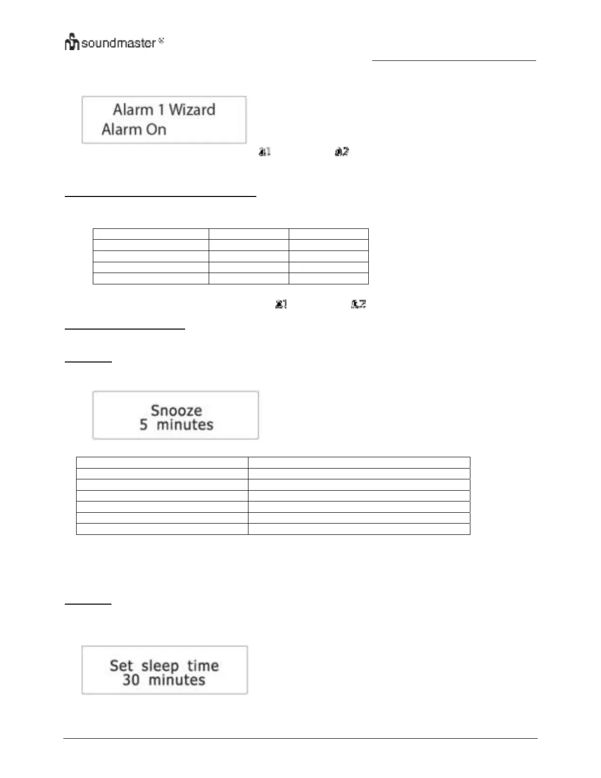 1. I standby-läge, tryck på ”ALARM” flera gånger för att bläddra bland på/av-inställningarna för larmen.