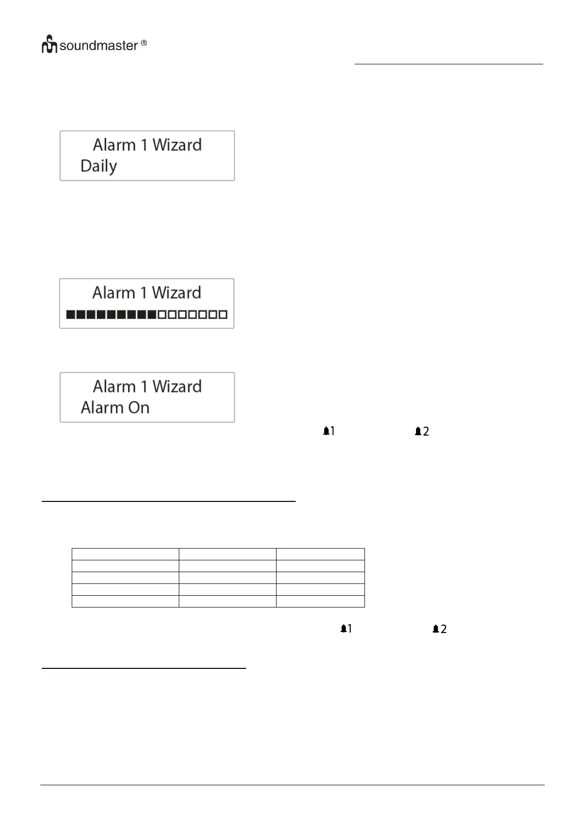 1. Drücken Sie im Standby-Modus „ALARM” (4), um sich durch die Optionen der Weckereinstellung zu