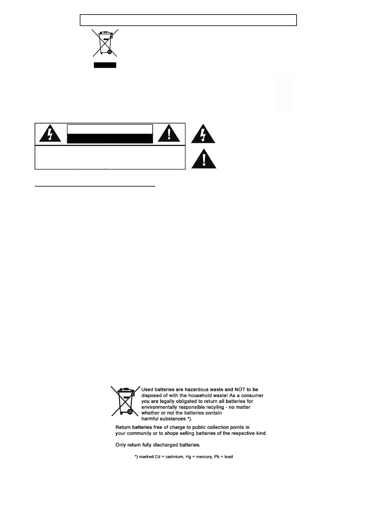• Used batteries are hazardous waste and NOT to be disposed of with the household waste!!!