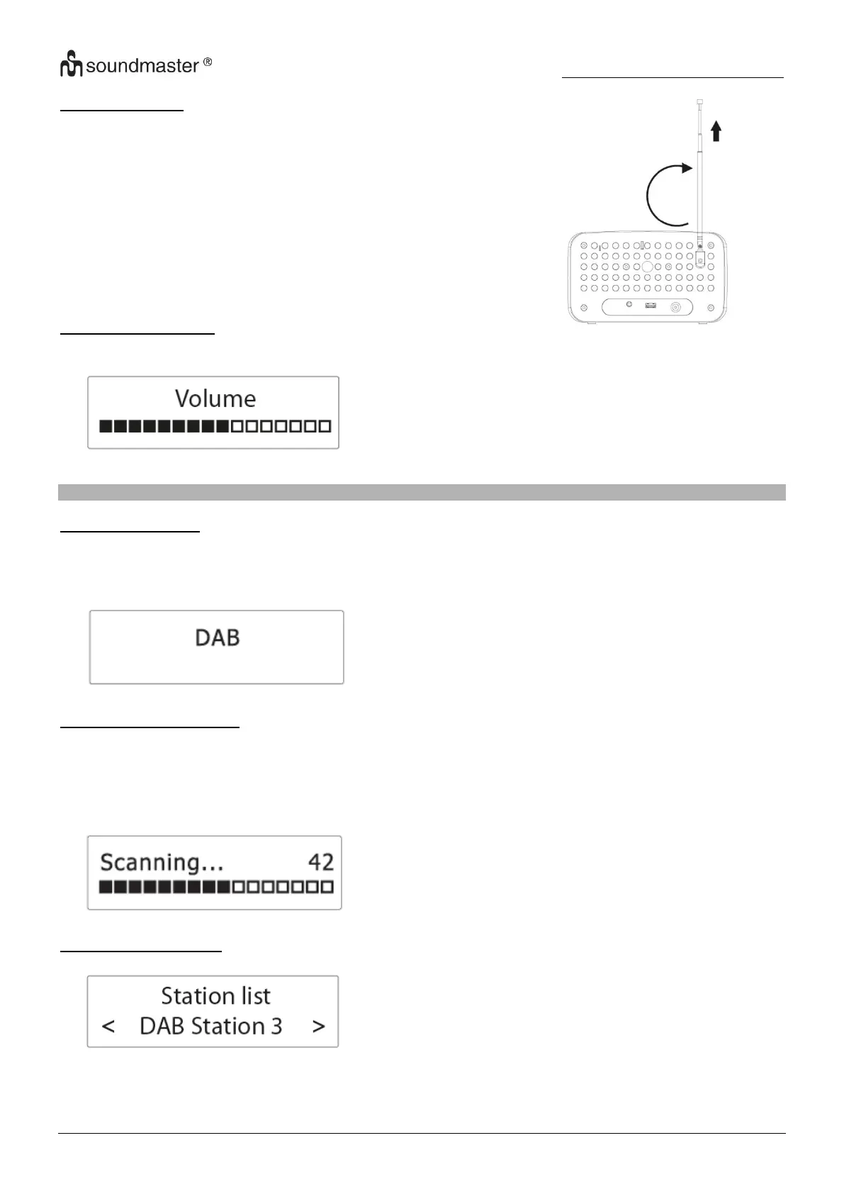In DAB mode, press “SCAN” (9) to activate the automatic station search.