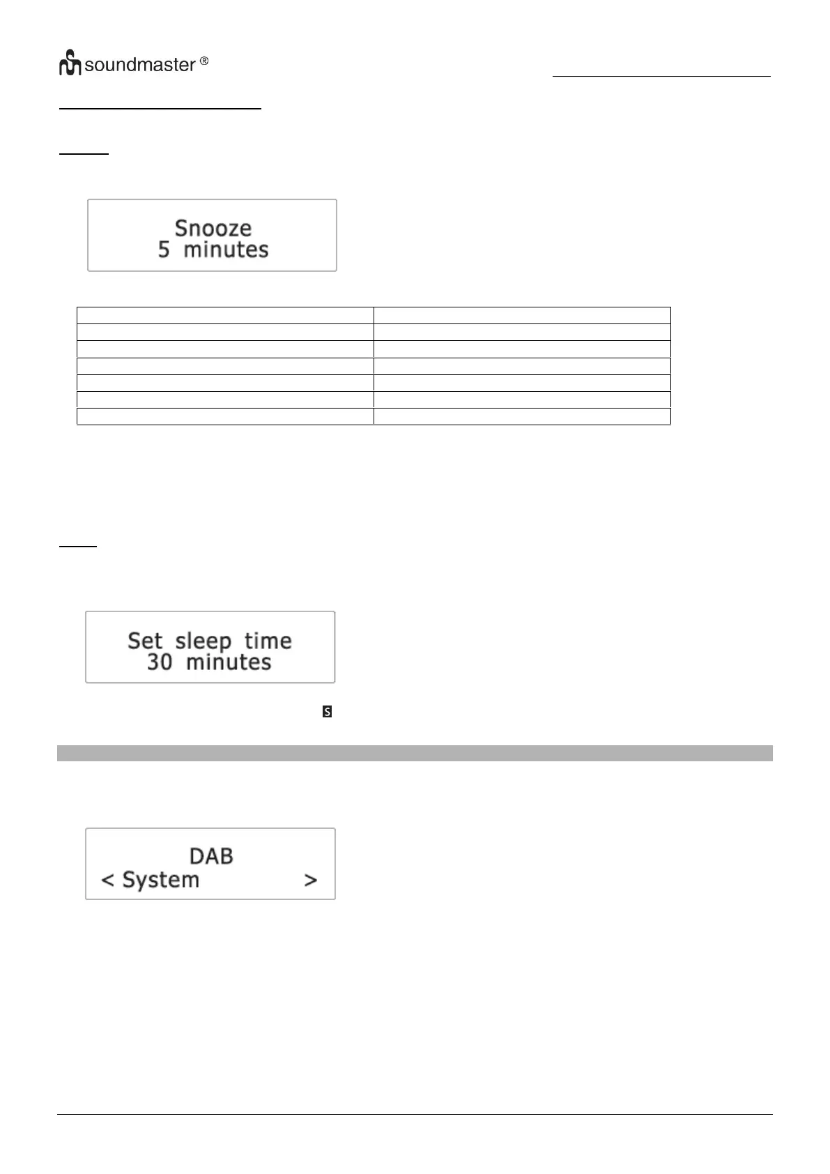 The snooze period can be selected according to the duration of the alarm (see chapter “Setting alarms”).