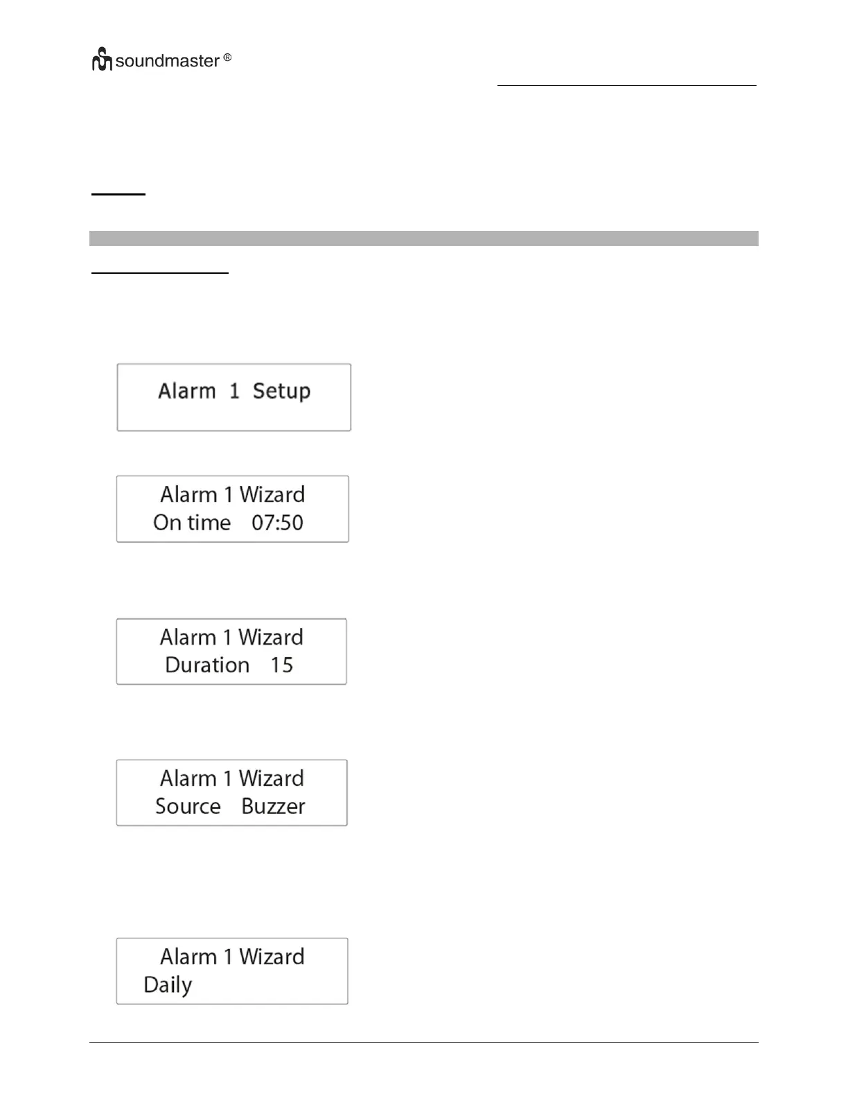 La durée est le compte à rebours au terme duquel, si l’alarme n’est pas désactivée, la radio passe en veille.