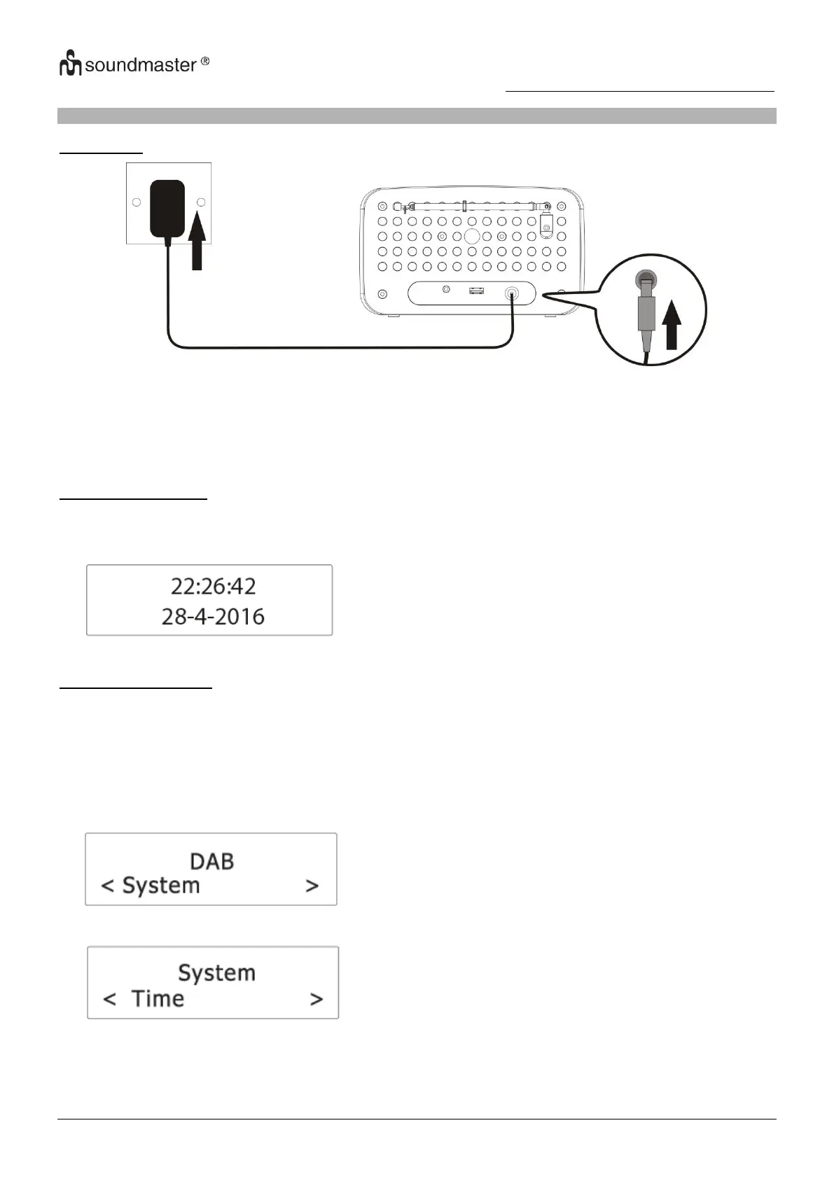2. Stecken Sie den DC-Stecker des Netzteils in die „DC IN“-Buchse des Radios.