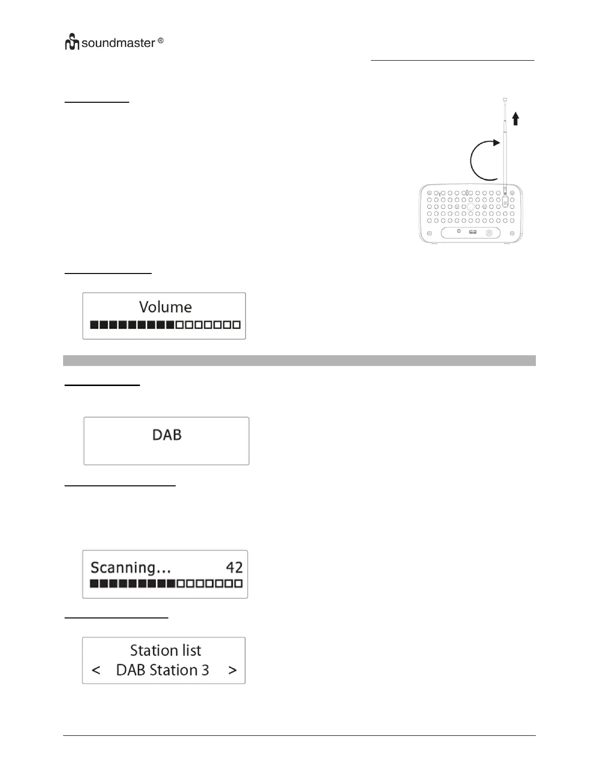 I DAB-modus, trykk på «SCAN» (9) for å aktivere automatisk stasjonssøk.