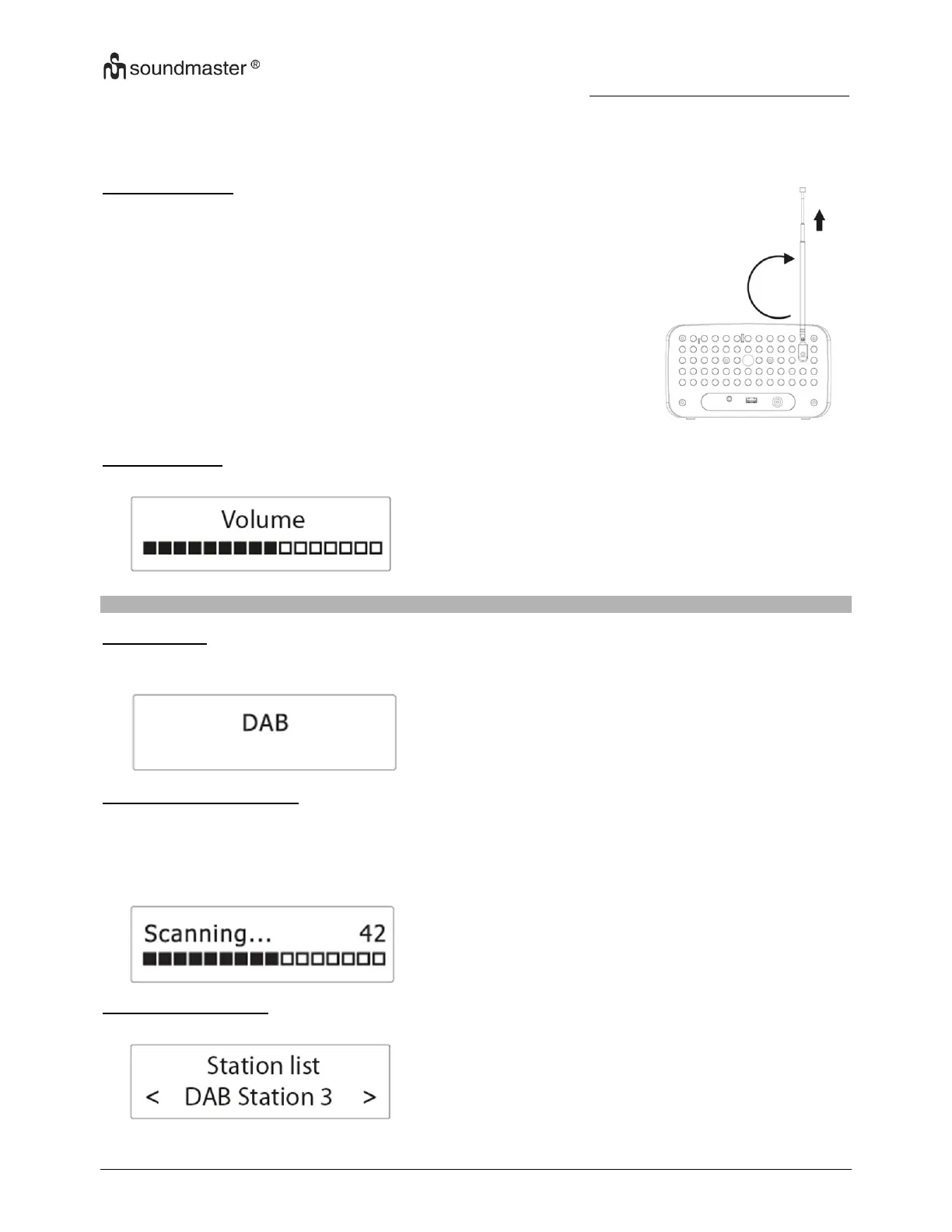 I DAB-läge, tryck på ”SCAN” (9) för att aktivera automatisk stationssökning.
