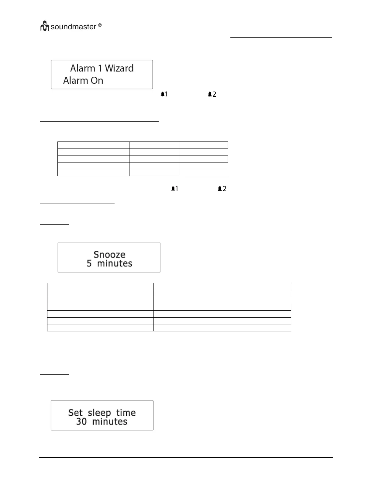 1. I standby-läge, tryck på ”ALARM” flera gånger för att bläddra bland på/av-inställningarna för larmen.