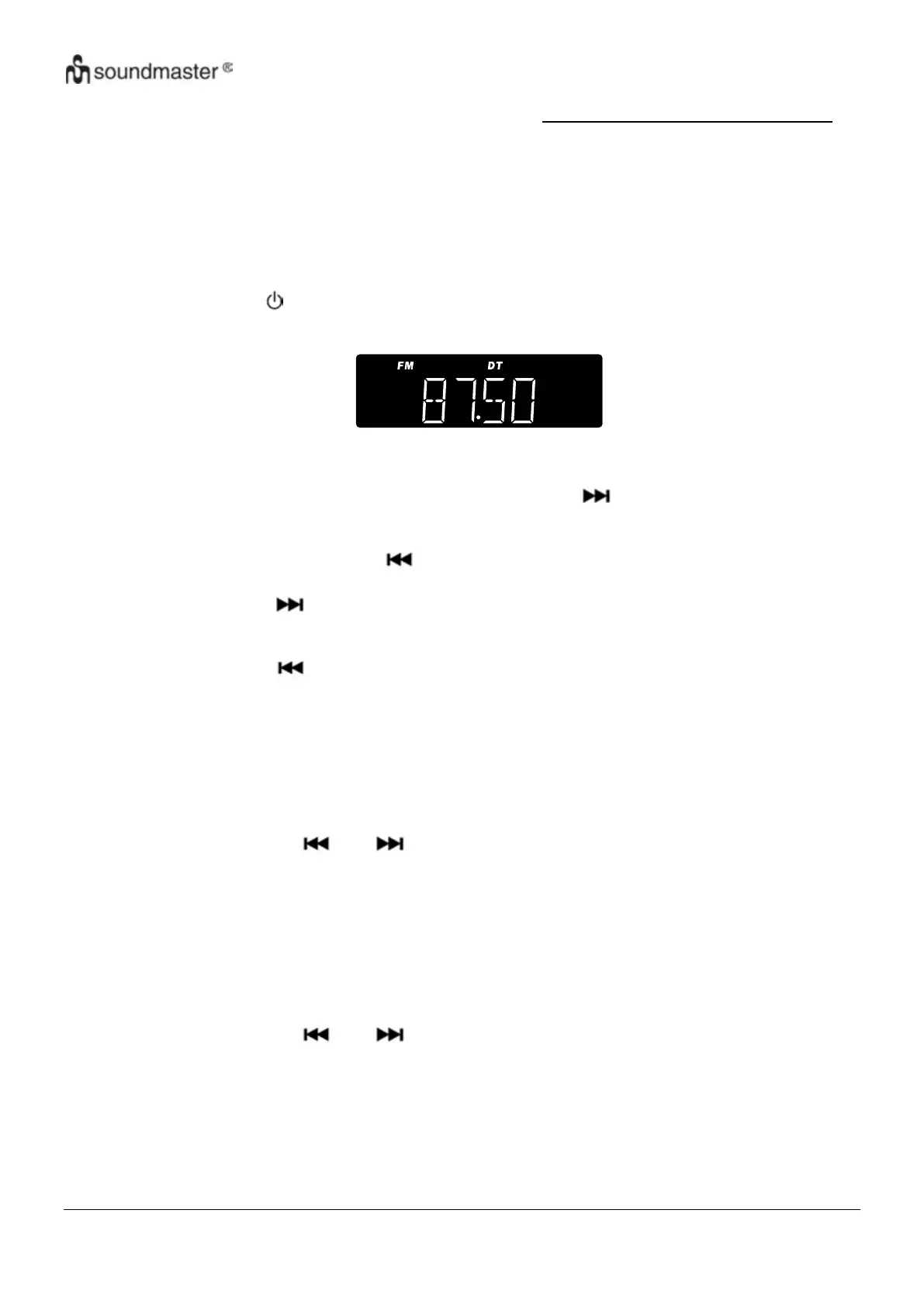 4. Houd < > ingedrukt om het volgende radiostation automatisch te zoeken door de