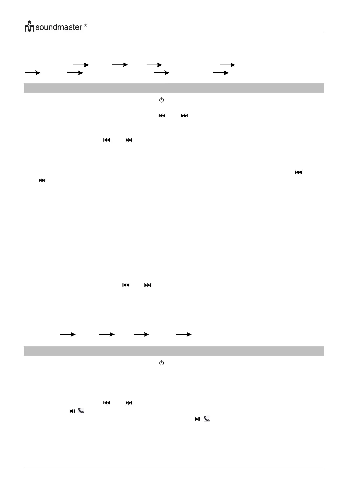 3. Premere il pulsante “ ” o “ ” per riprodurre il brano precedente o successivo. Premere il