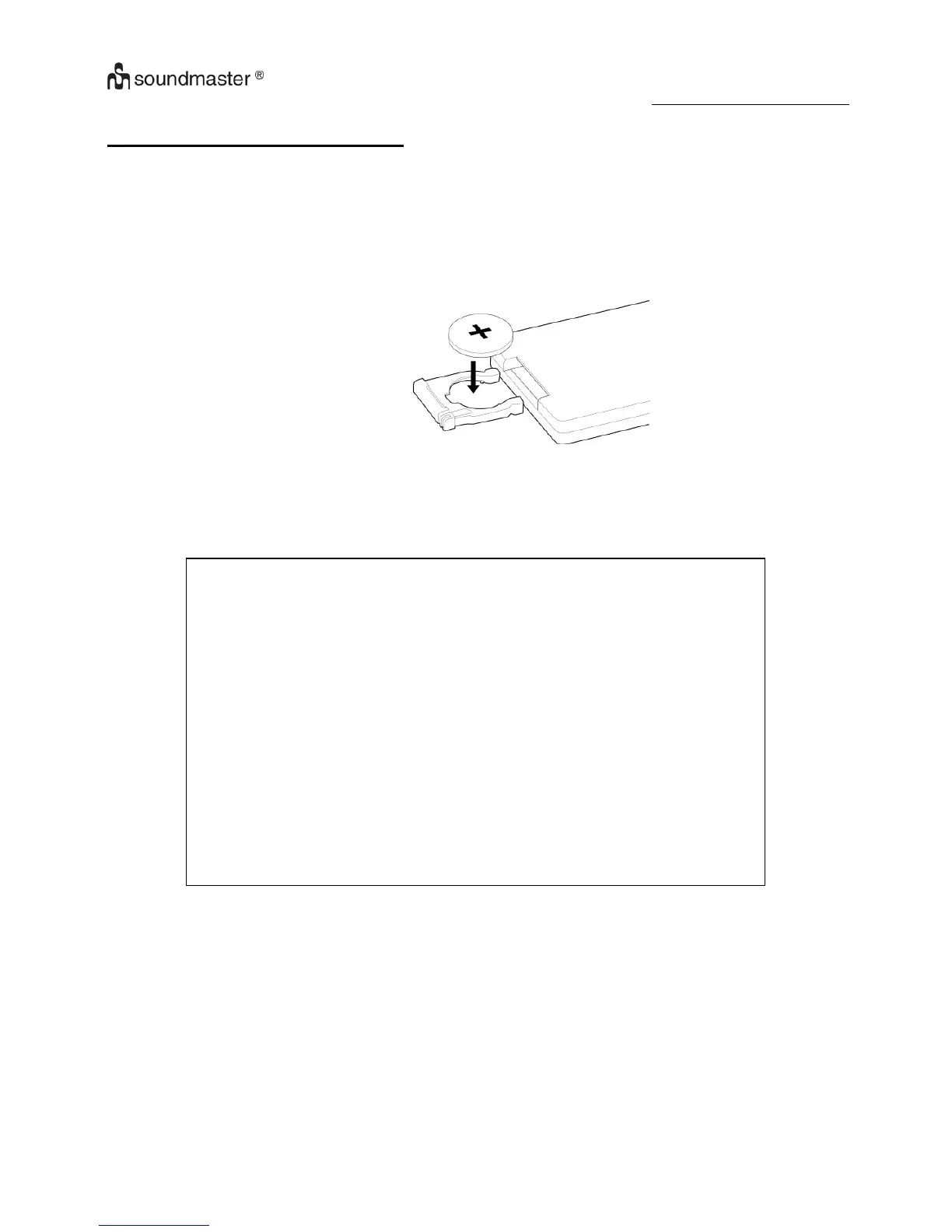 2. Insérez une (1) batterie de type CR2032 dans le compartiment de la batterie en respectant la polarité indiquée à l’intérieur.