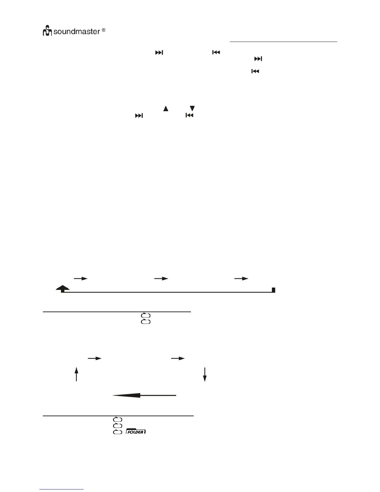 reproducción aleatoria, la repetición de una sola pista, de todas las pistas o de una carpeta (solo para MP3) y la reproducción