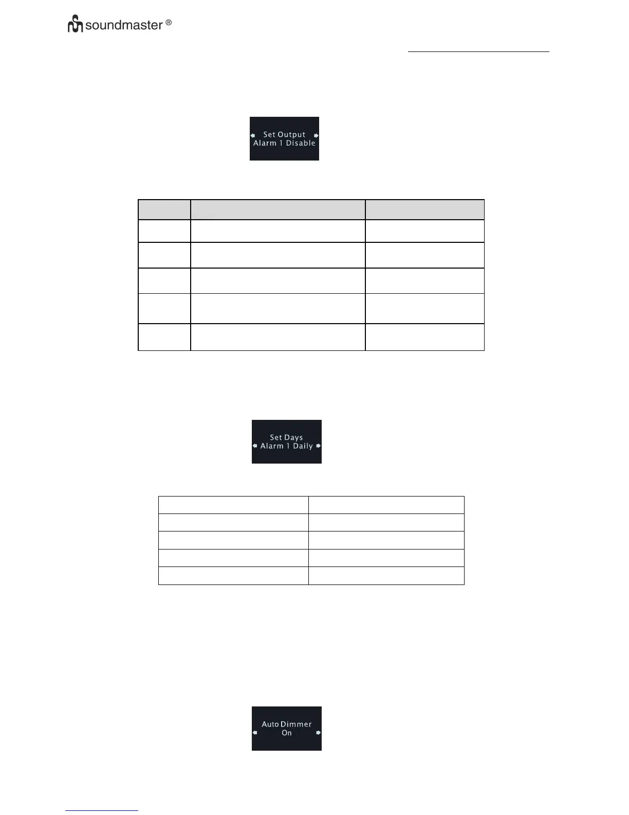 Press <enter> to confirm selected hour value and enter to select output of alarm active: