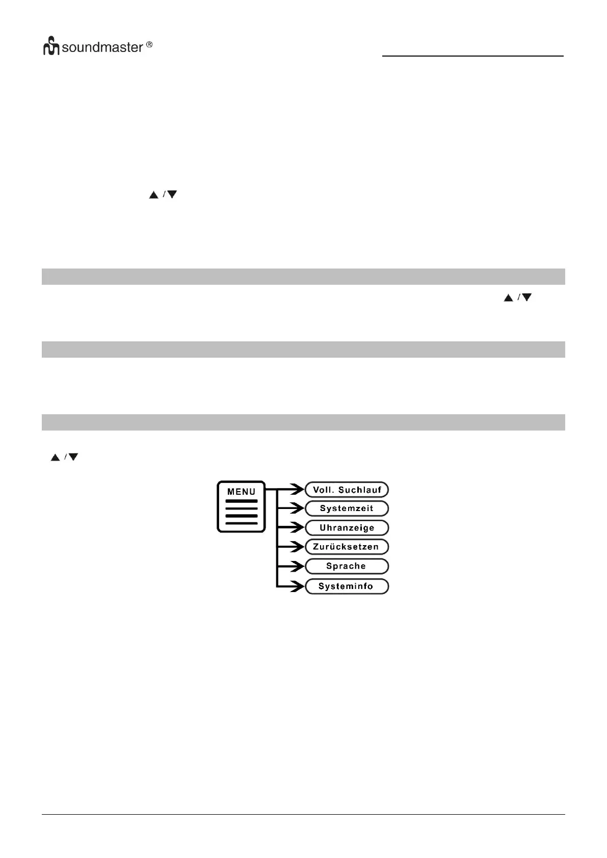 Drücken und halten Sie die “MENU/INFO” bis das Hauptmenu erscheint. Wählen Sie mit