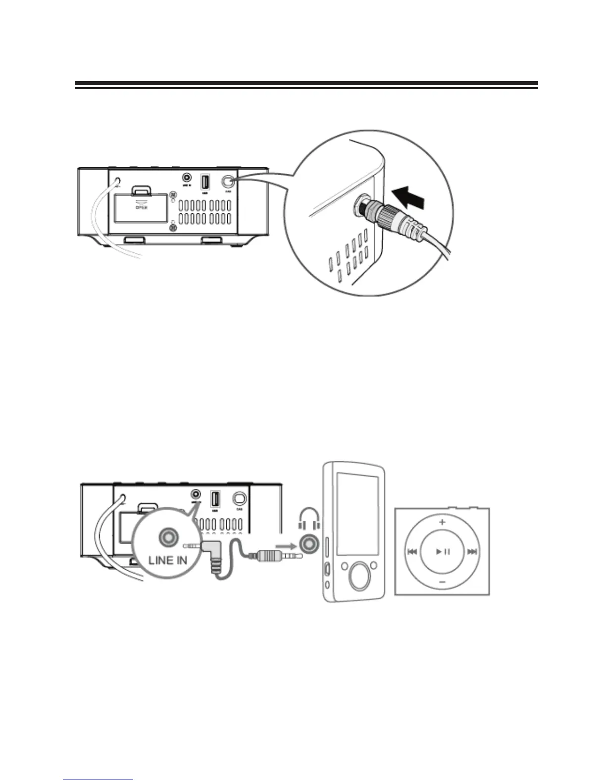 - Use a 3.5mm to 3.5mm audio cable (included) to connect the audio player's headphone socket to the