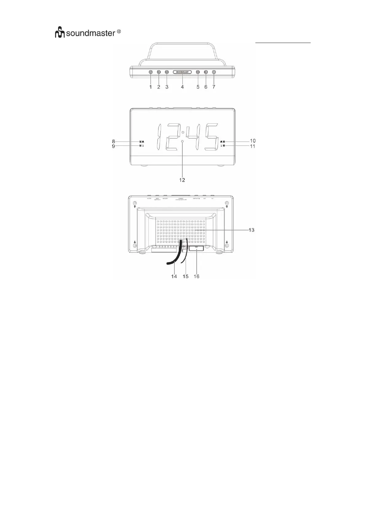 7. RADIO ON / OFF / ALARMU OFF