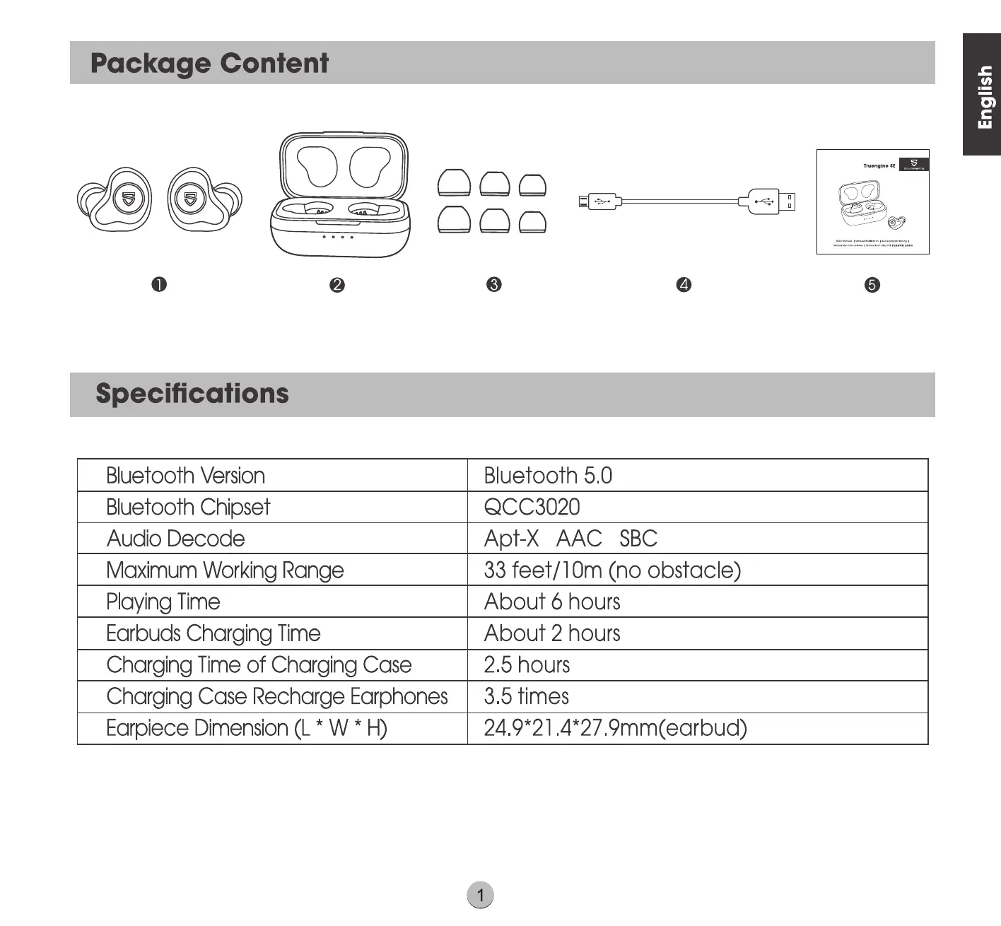 2 Please charge the earphones at least once