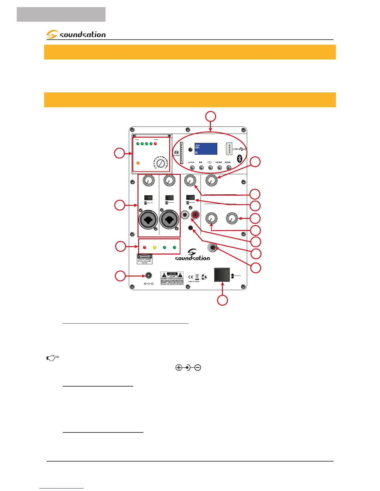 HYPER PLAY 6AMW active loudspeaker have several connectors, controls, and indica-