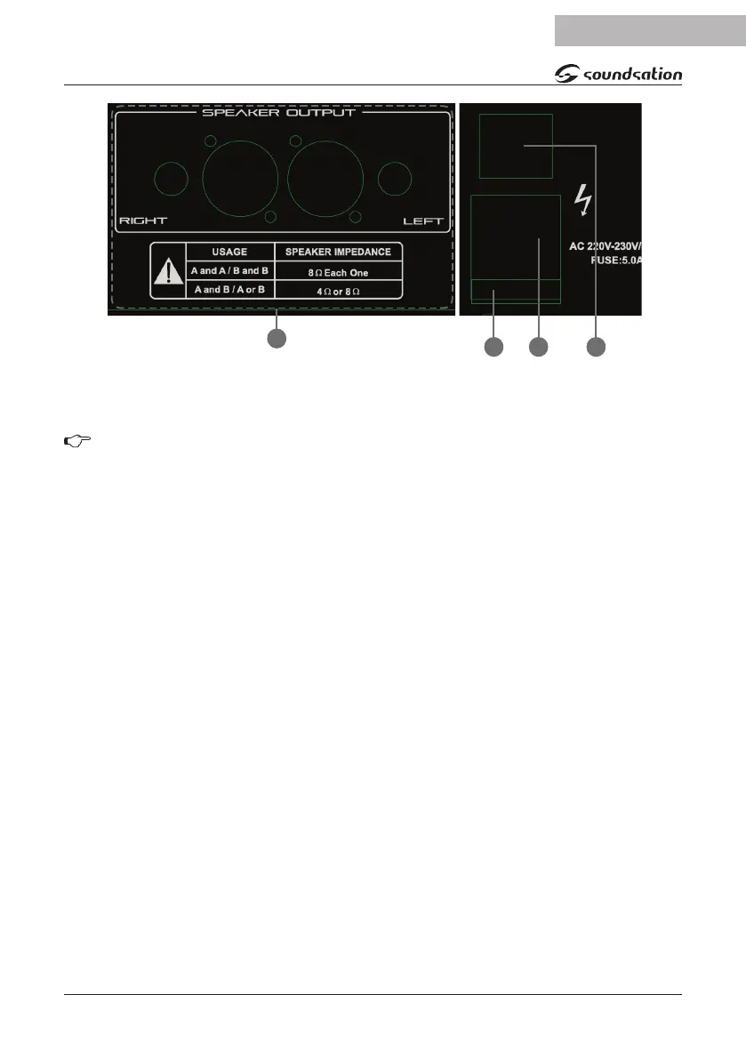 Connect here the power cord. Make sure the mains is the same as indicated on the rear
