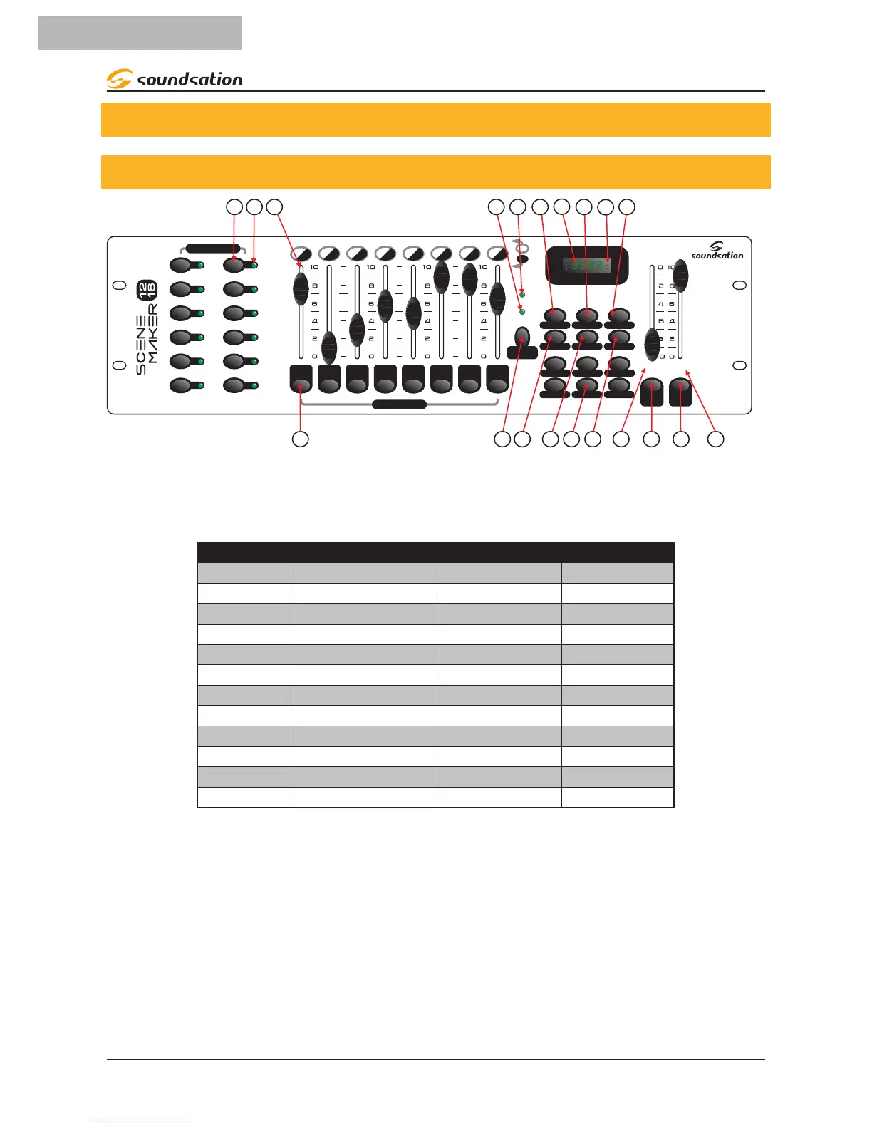 1. Tasti Scanner (1-12): 12 scanner di 16 canali DMX e controllo fader. Premere un