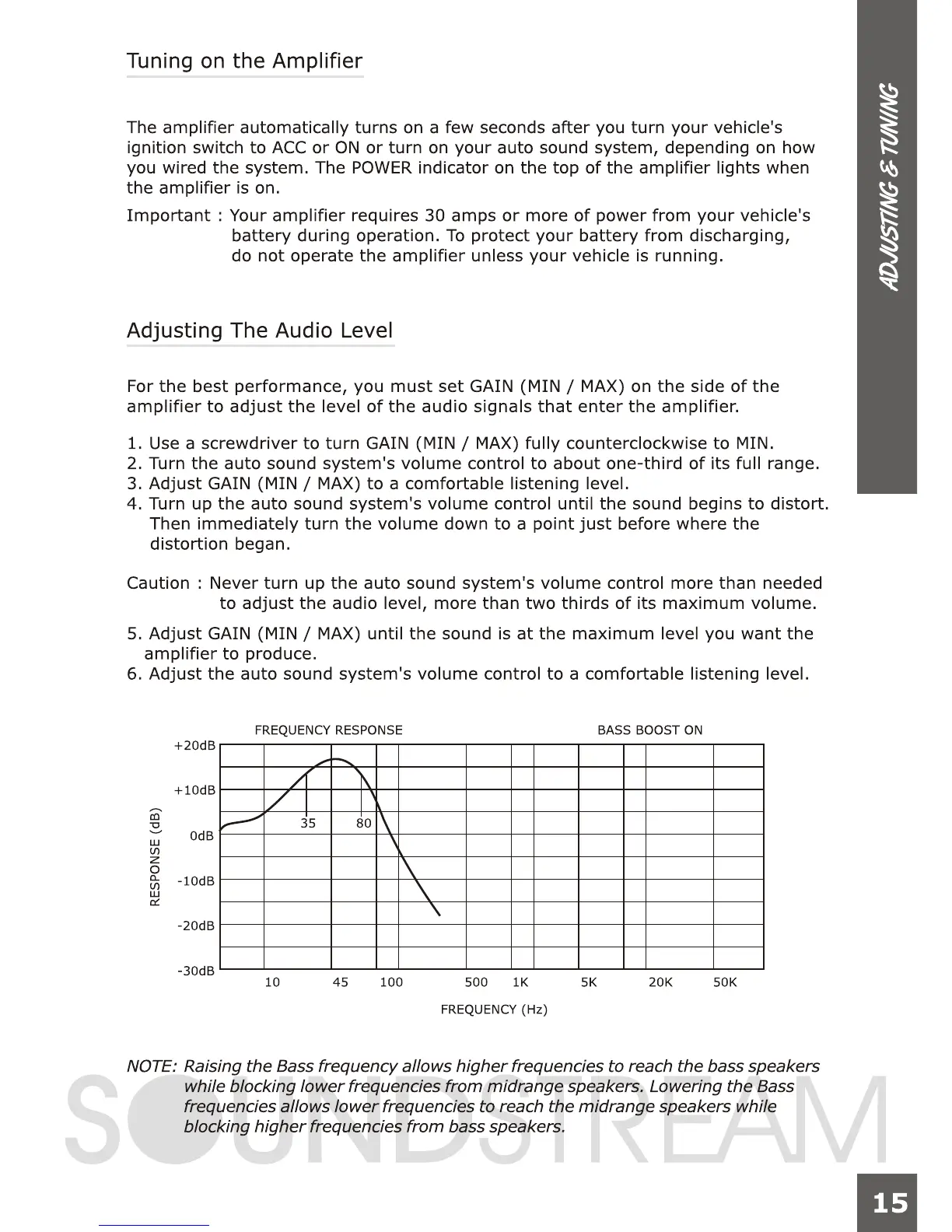 Soundstream PCX2.180 - Tuning on the Amplifier; Adjusting the Audio Level